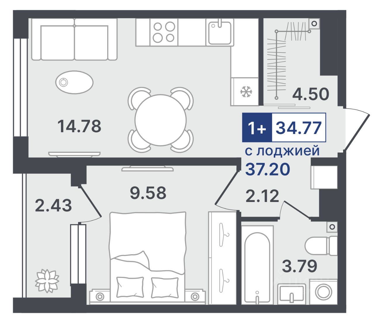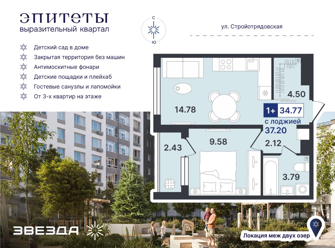 продам 1-к, Стройотрядовская, 44 660 000 ₽