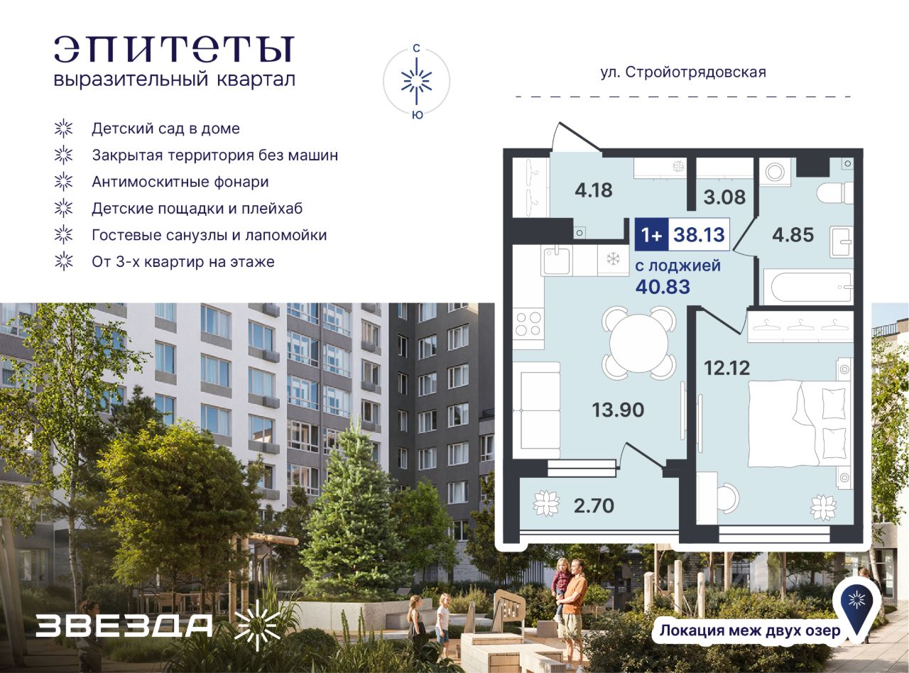 продам 1-к, Стройотрядовская, 45 260 000 ₽