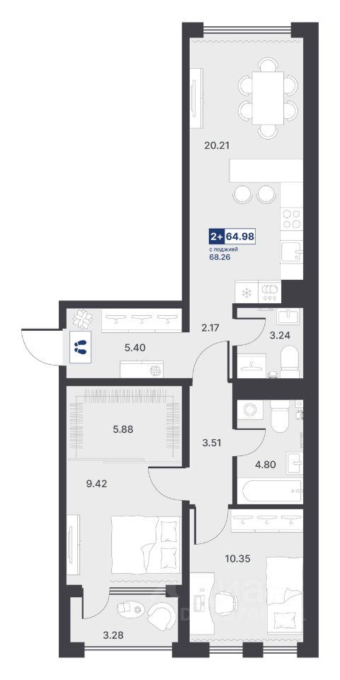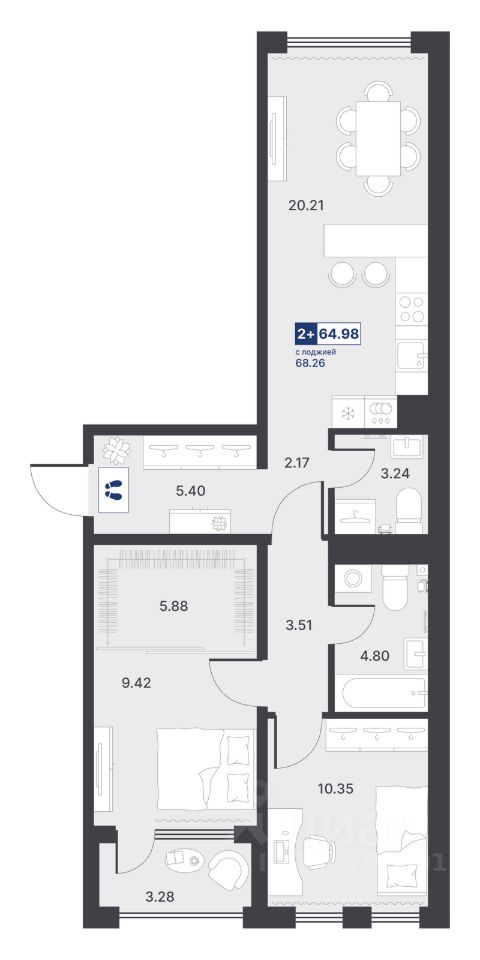 продам 2-к, Менжинского, 10 корп. 18 770 000 ₽