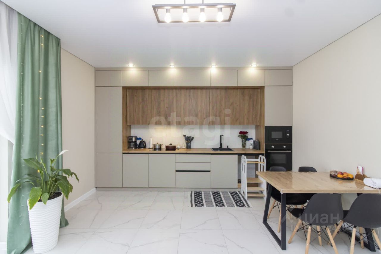 В доме сделан современный ремонт в трендовых цветах. Просто как картинка из пинтерест)! Кухня-гостиная с большим окном в пол, выходящим на уютную террасу. Мечта любой хозяйки!
