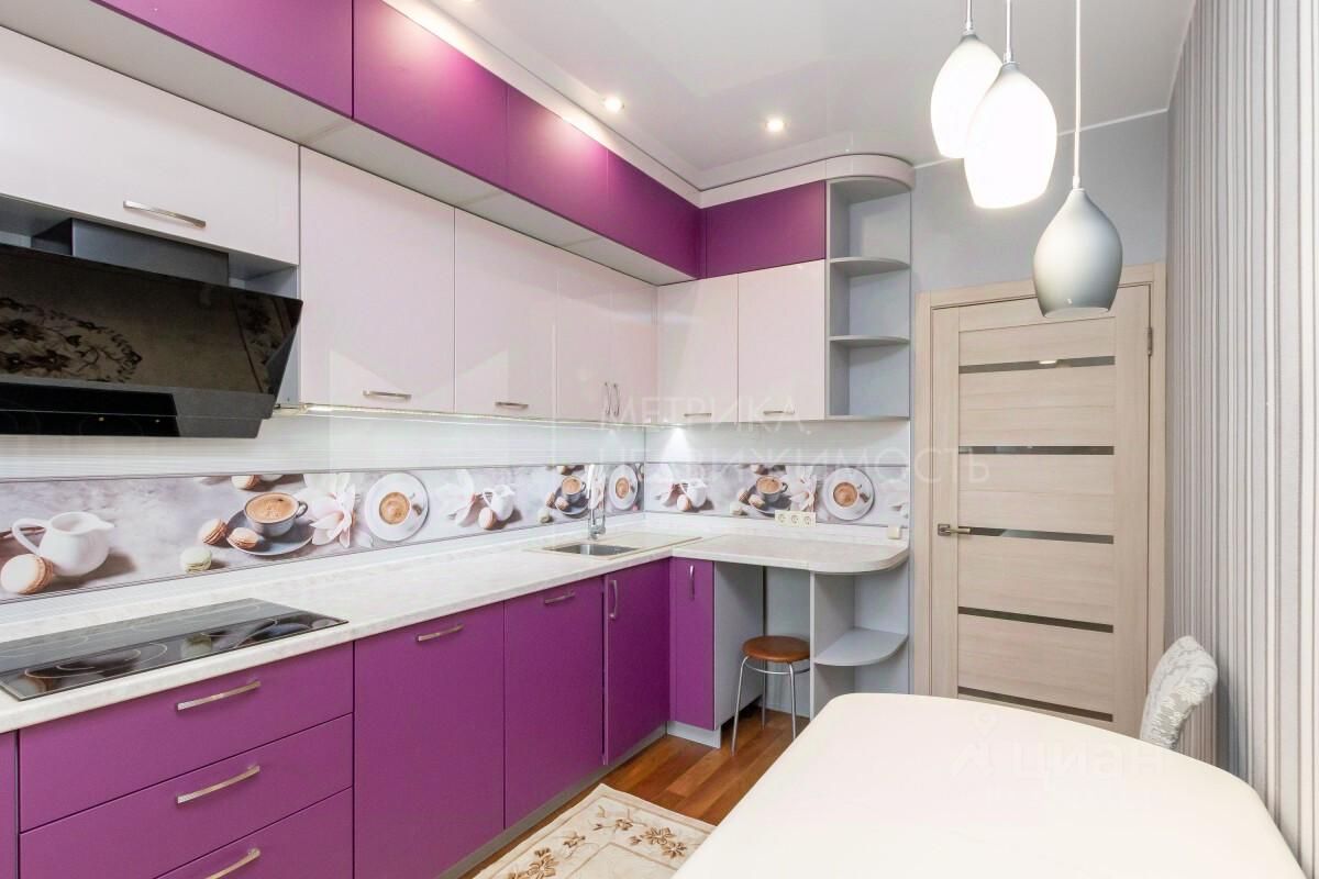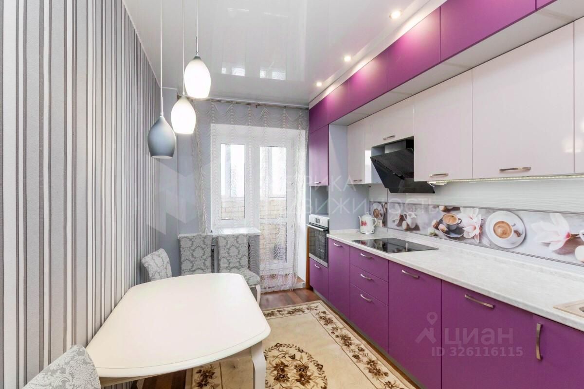Светлая 1 комнатная квартира с продуманной планировкой в доме кирпичного исполнения. Полностью готова к проживанию: светлая кухня со встроенной техникой (духовка, вытяжка), вместительный шкаф-купе в прихожей, стильная стенка в гостиной и удобный диван. Окна выходят во внутренний благоустроенный двор с детской и спортивной площадками. Интерьер выполнен в светлых тонах с акцентами фиолетового цвета, создающими стильный и современный вид.