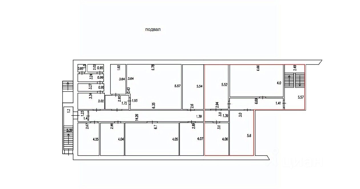 В подвальном помещении, общей площадью 29,6 кв.