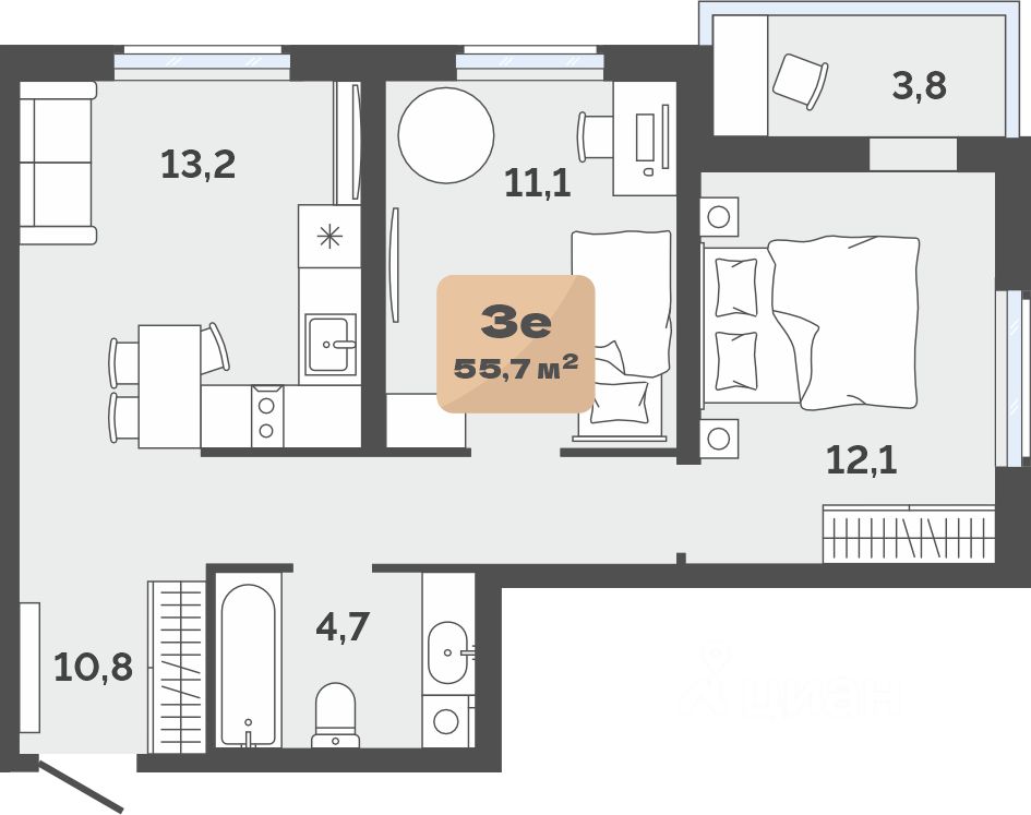 продам 2-к, Республики, 204 корп. 208 600 000 ₽