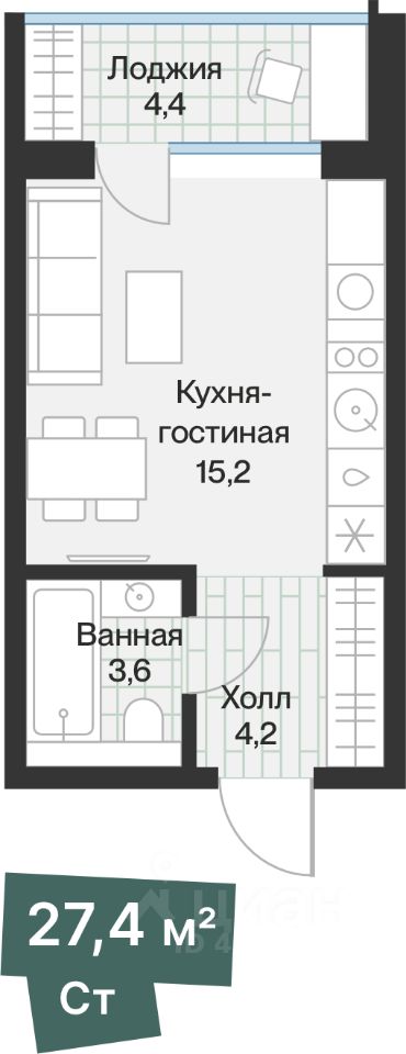 продам 1-к, Ямская, 9905 020 000 ₽