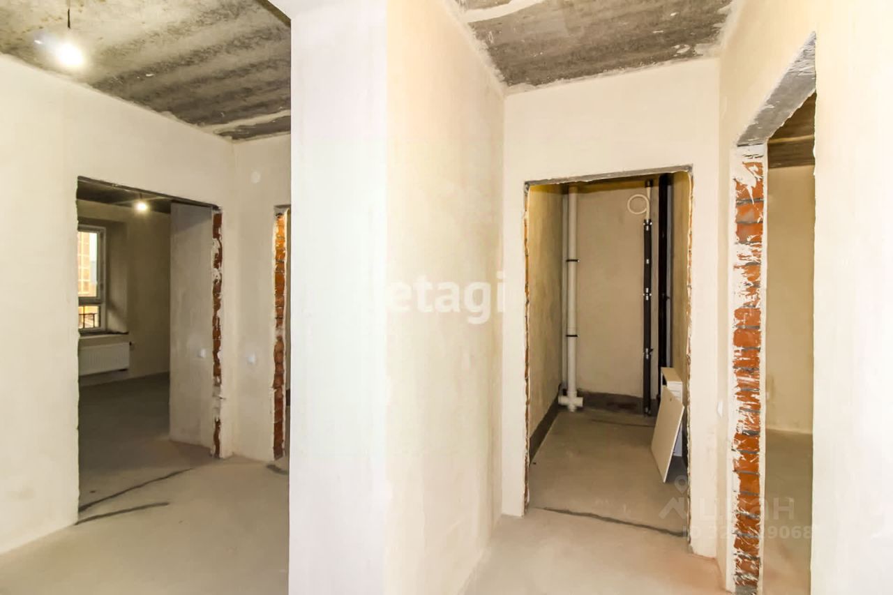 В квартире выполнена улучшенная черновая отделка: цементно-песчаная стяжка пола с шумоизоляцией, штукатурка стен под маяк, разводка электропроводки, счётчики на свет, воду и тепло в квартире.