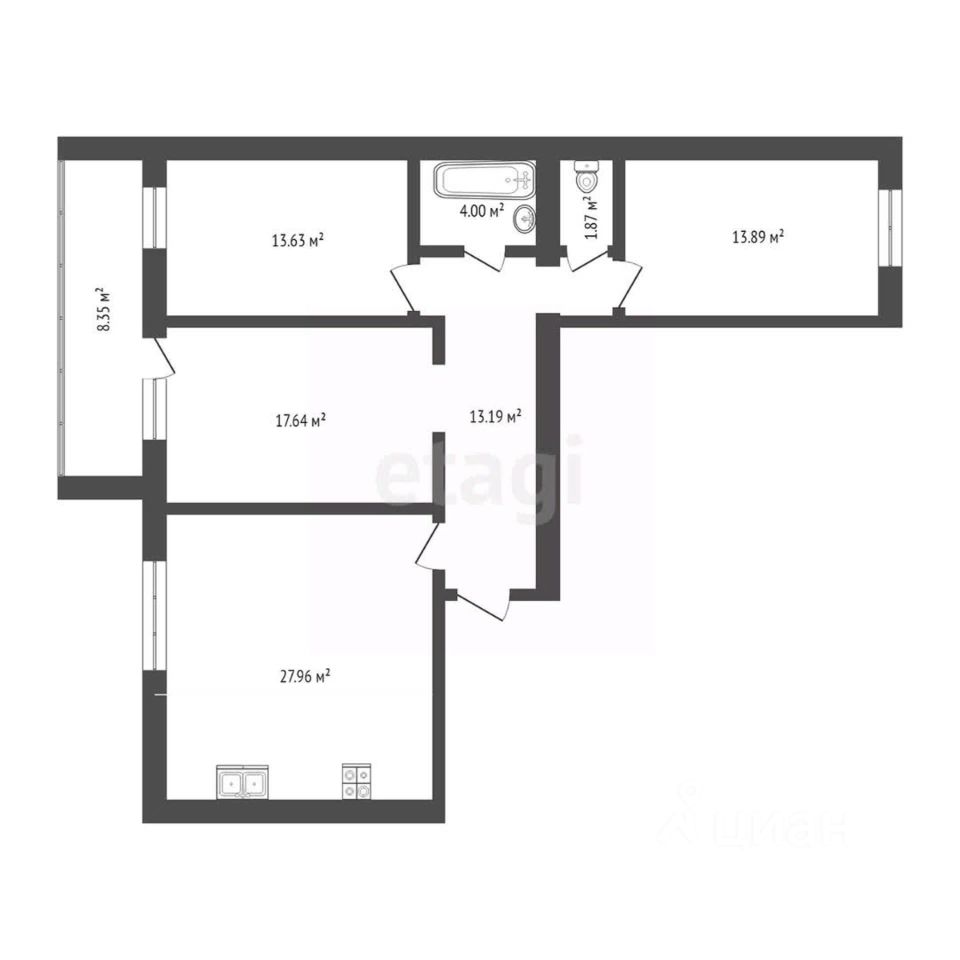 ОБЪЕКТ: квартира формата 3+, площадь 93,3 кв.м., 2 этаж 14-этажного дома