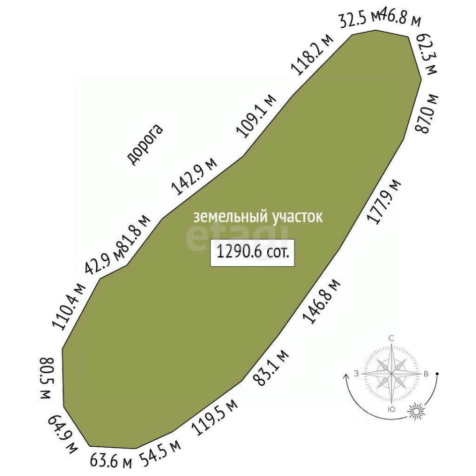 Площадь участка1290,6 соток