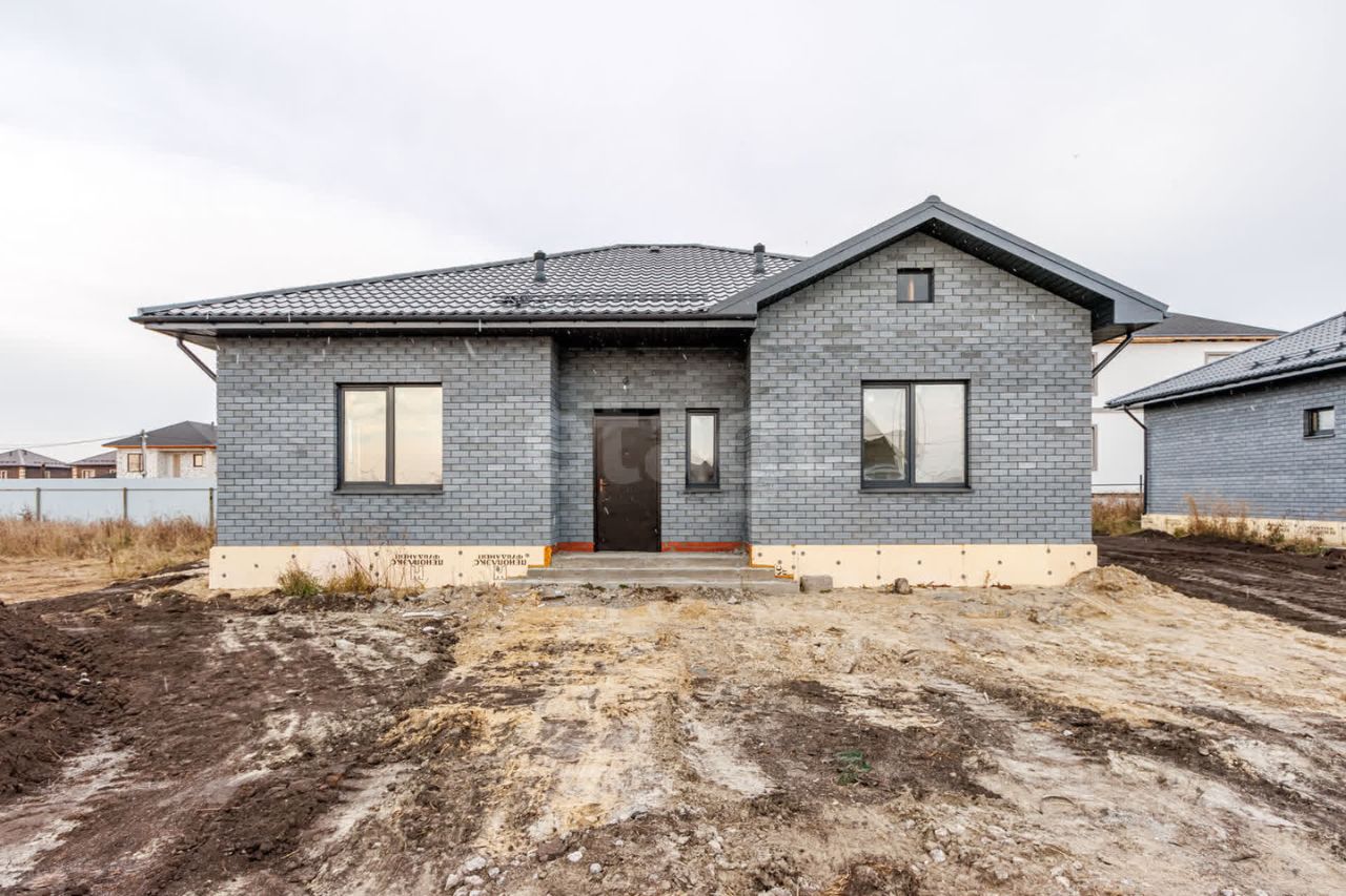 Продается современный одноэтажный кирпичный коттедж общей площадью 115 кв.м расположенный на земельном участке 4 сотоки. Фундамент на монолитной подушке 300 мм . Дом состоящий из 3 комнат, выполнен из керамзитных блоков, облицован селикатным кирпичом, стены утеплены пенополистиролом. Крыша покрыта металлочерепицей и утеплена 20см слоем мин.ваты. Электричество заведено в дом, три фазы 220/380 Вт,отведенная электрическая мощность 15 кВт. Стены в внутри дома выровнены под маяк ,ошпаклеваны и подготовлены под чистовую отделку. Вода (скважина) заведена в дом. Водоотведение осуществляется в переливной септик, расположенный у границ участка. Подъезд к дому щебень. Хорошая транспортная развязка. По расстоянию от города в 15 минутах езды от центра. Ходит городской транспорт. Рядом пос.Московский с развитой инфраструктурой. Очень перспективное место - комплексная, осваиваемая территория, на которой будет детский сад, школа, спортивные площадки и многое другое. Некоторые собственники уже построили дома. Коммуникации и обслуживание будет за счет средств муниципалитета. Электричество и газ уже подведены. На широких прямых улицах ведутся работы дорожного полотна, в данный момент дороги отсыпаны щебнем. В планах застройки прокладка централизованного водоснабжения и канализации, асфальтирование дорог и тротуаров. Поселок активно застраивается.