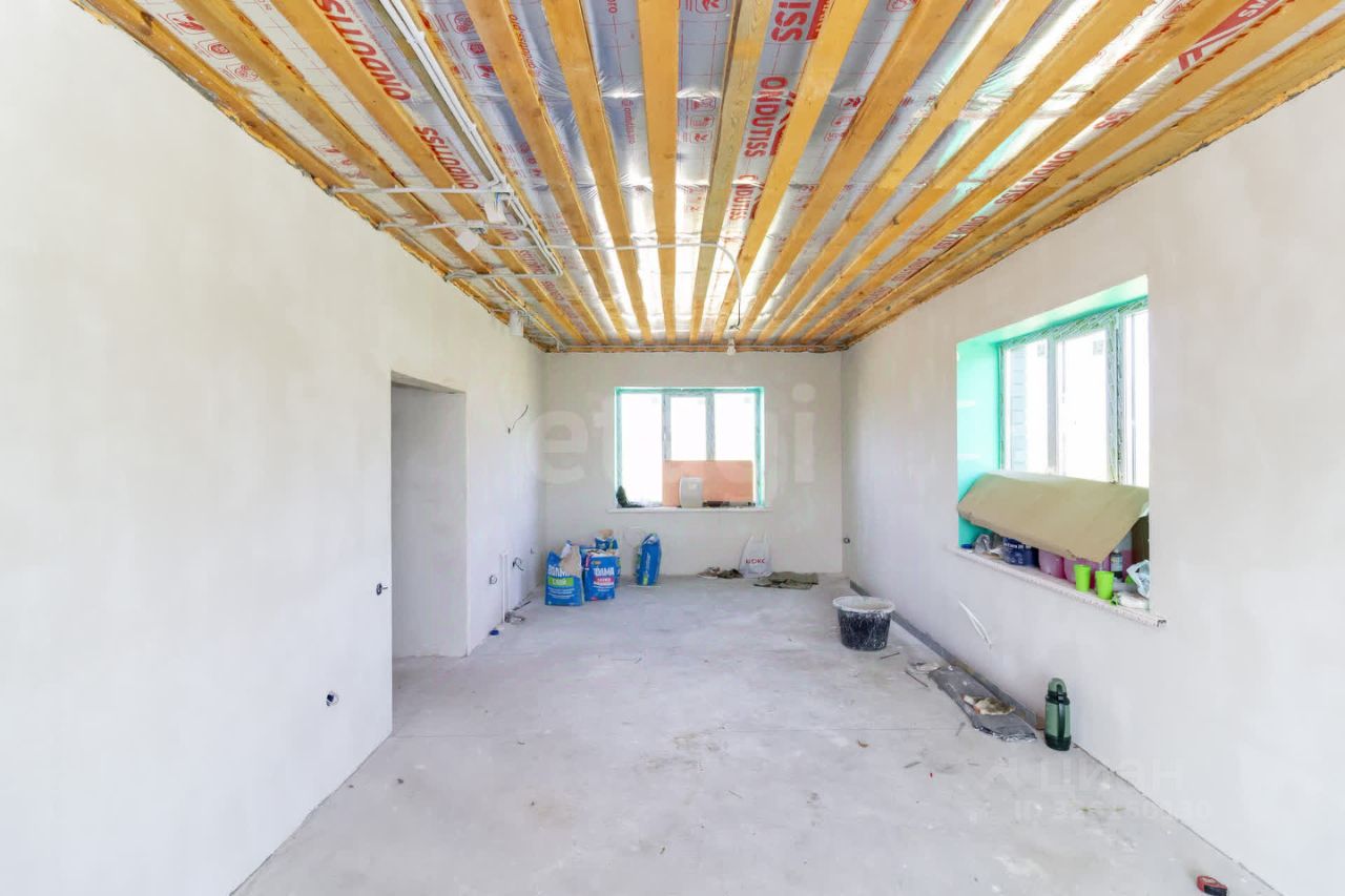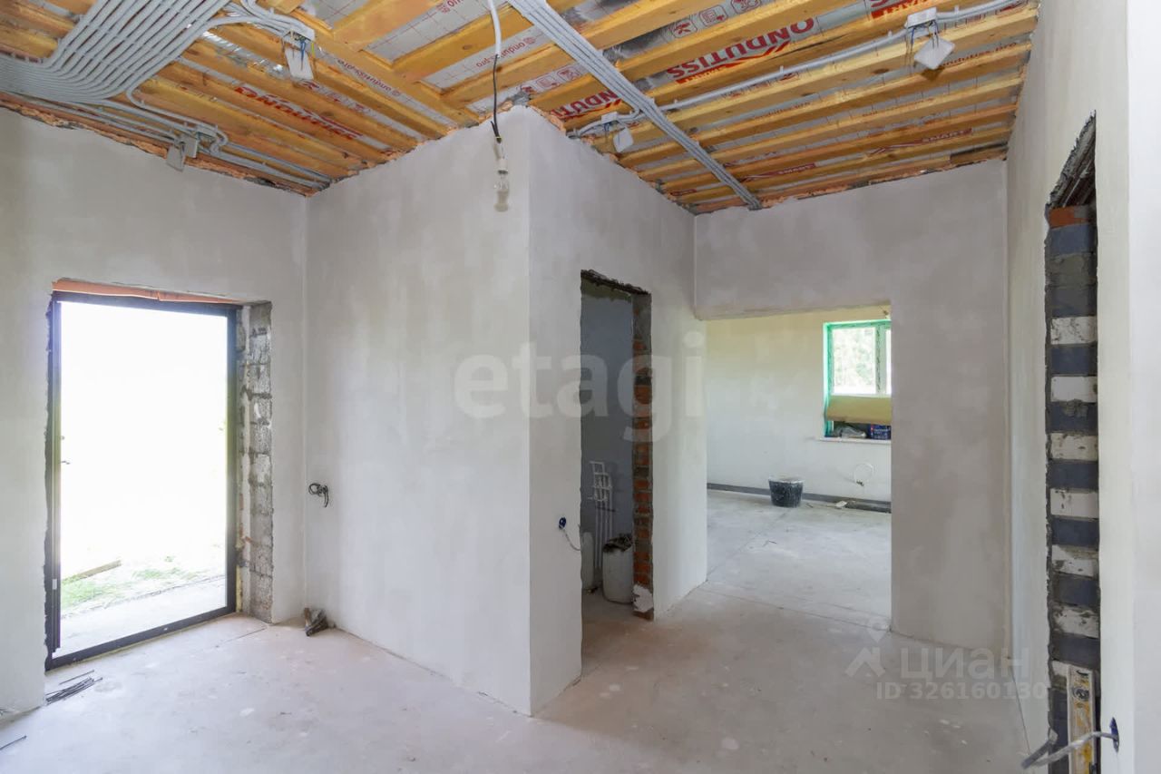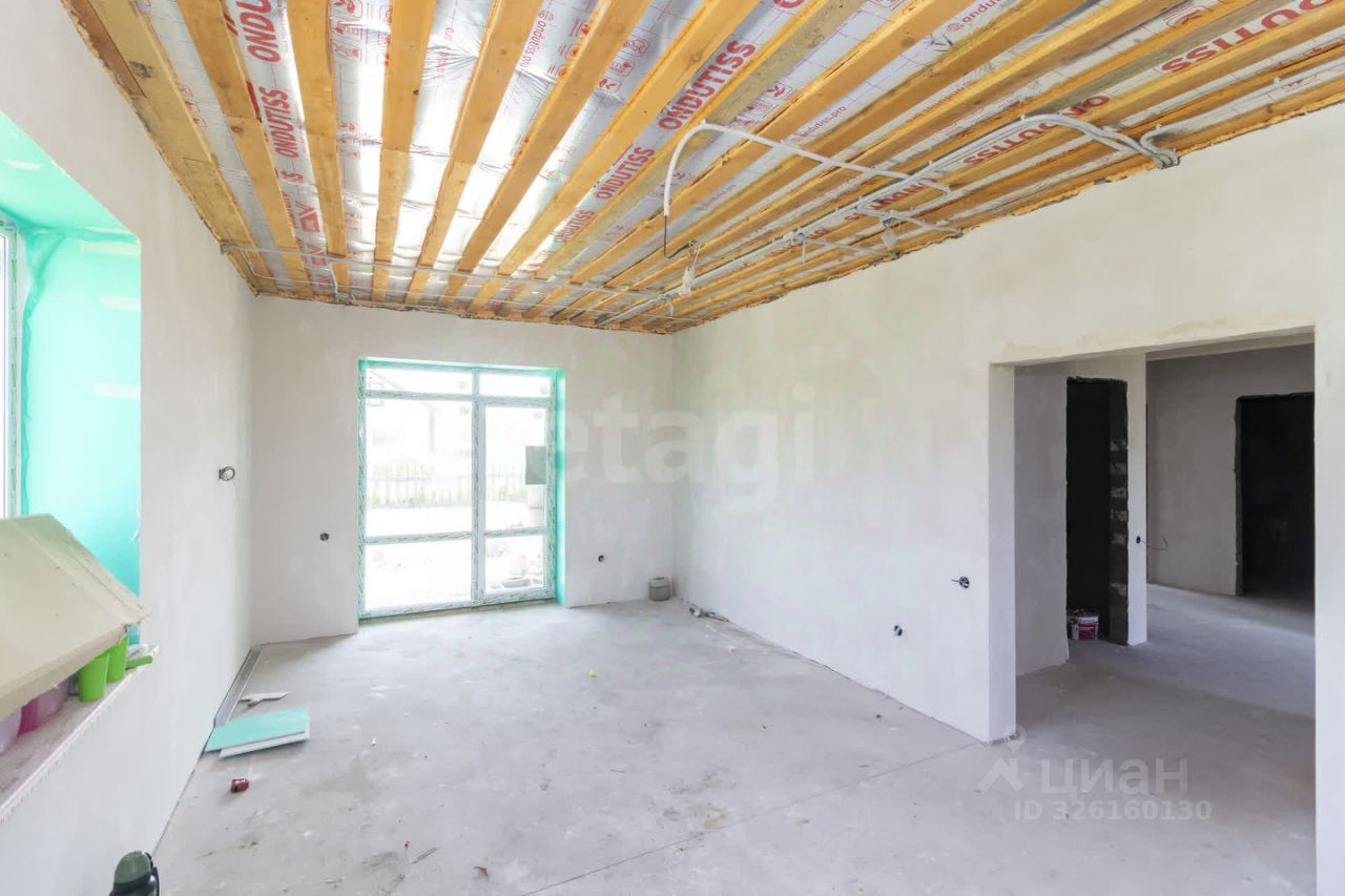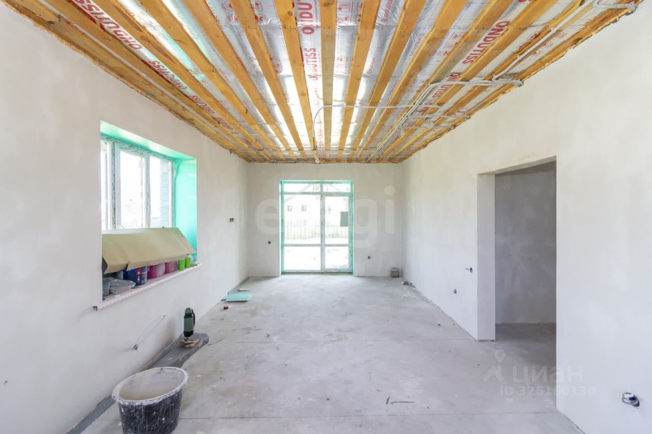 Планировка продумана для комфортного проживания семьи. Просторная кухня-гостиная с панорамным окном и выходом на террасу создает ощущение простора и удобства для совместного времяпрепровождения. Три большие спальни позволяют разместить всех домочадцев, два санузла повышают бытовой комфорт. Дом сдается в предчистовой отделке: стены выровнены под маяк, выполнена стяжка пола, разведено электричество, что дает возможность завершить ремонт по индивидуальному вкусу без масштабных подготовительных работ.
