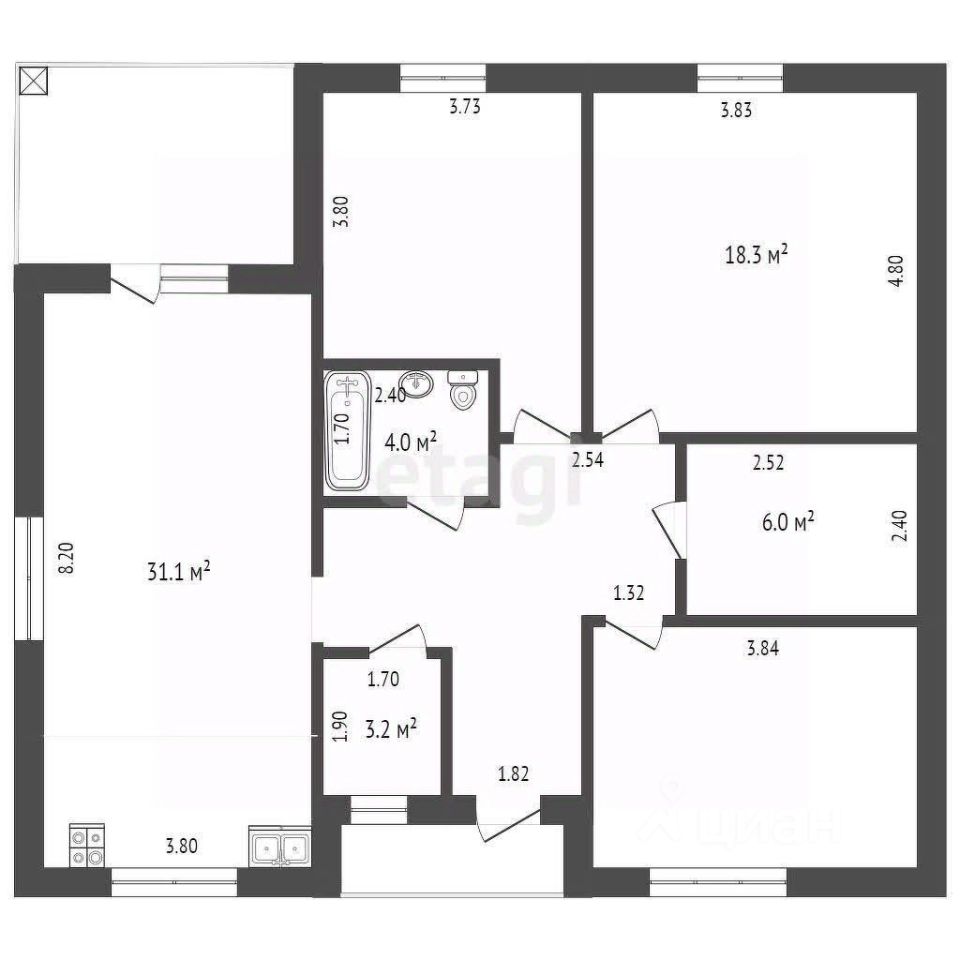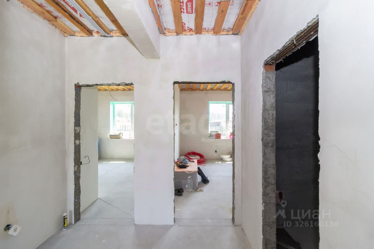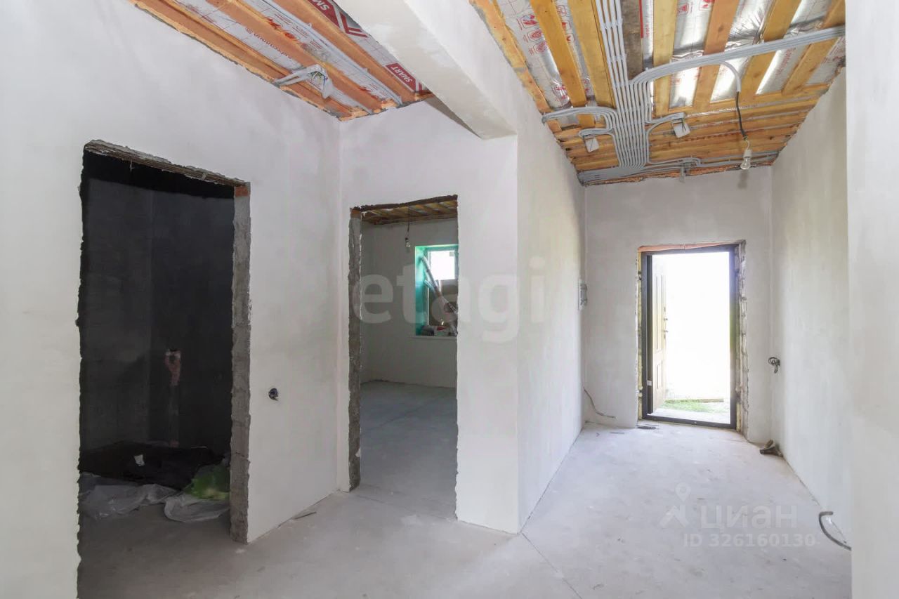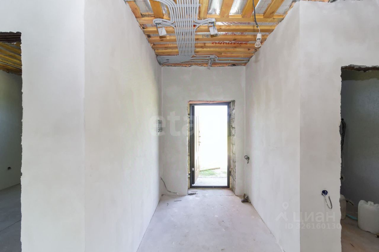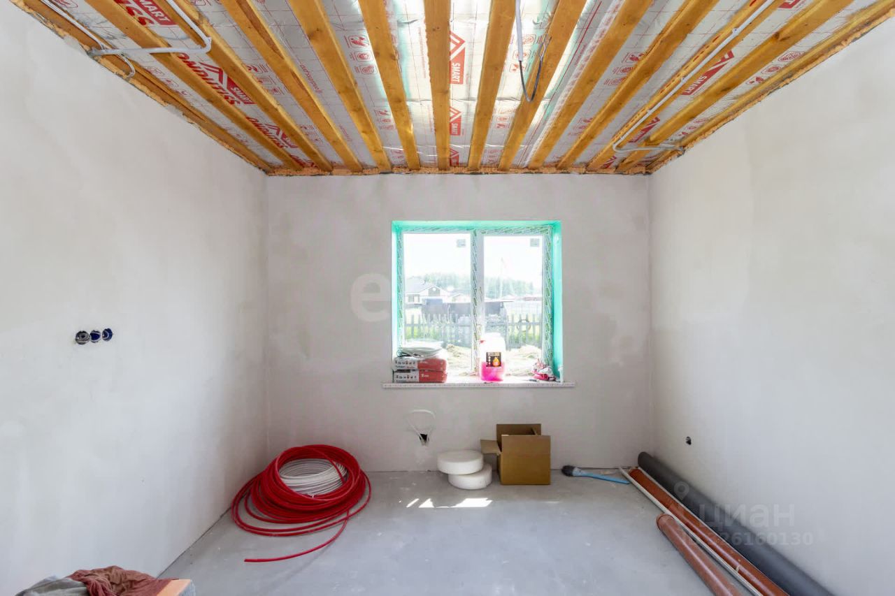 Планировка продумана для комфортного проживания семьи. Просторная кухня-гостиная с панорамным окном и выходом на террасу создает ощущение простора и удобства для совместного времяпрепровождения. Три большие спальни позволяют разместить всех домочадцев, два санузла повышают бытовой комфорт. Дом сдается в предчистовой отделке: стены выровнены под маяк, выполнена стяжка пола, разведено электричество, что дает возможность завершить ремонт по индивидуальному вкусу без масштабных подготовительных работ.