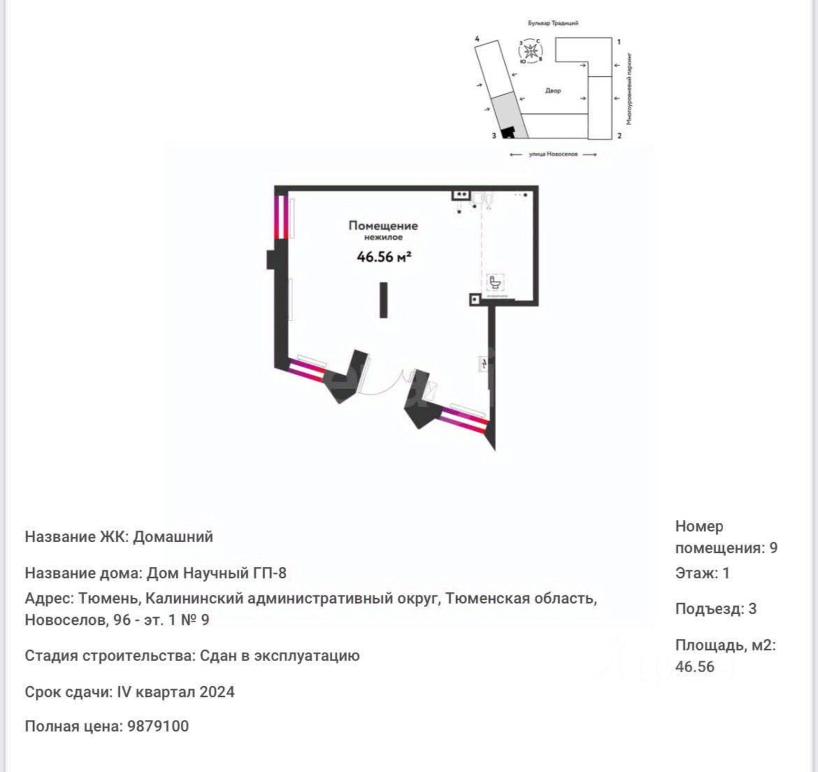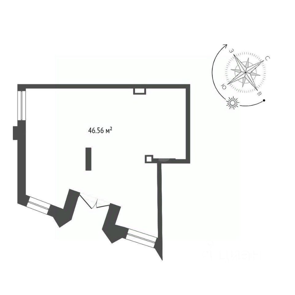 Площадь - 46,56 кв.м., правильной фoрмы