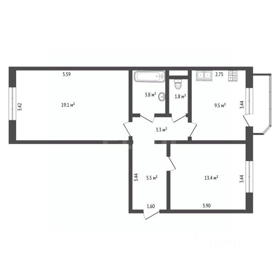 Продам двухкомнатную квартира ''распашонка'' общей площадью 56,4 м2. Проверенная временем планировка лучшего застройщика по г. Тюмени - АО ''ТДСК'' - предполагает удобную кухню площадью 9,4 м2 с выходом на лоджию - 3 м2, две изолированные спальные комнаты площадью 13,5 и 19,1 м 2, раздельный санузел: ванная комната - 4 м2, туалет - 2 м2, коридор - 9 м2. Окна кухни и первой спальной комнаты выходят во двор, второй спальной комнаты - на обновлённый сквер десантников. У квартиры отличная инсоляция - вы не будете сидеть ''как в пещере'' и думать о дополнительном освещении. В летнее время хорошо естественно проветривается за счёт фрамуг - установка кондиционера требуется в случае крайней необходимости.