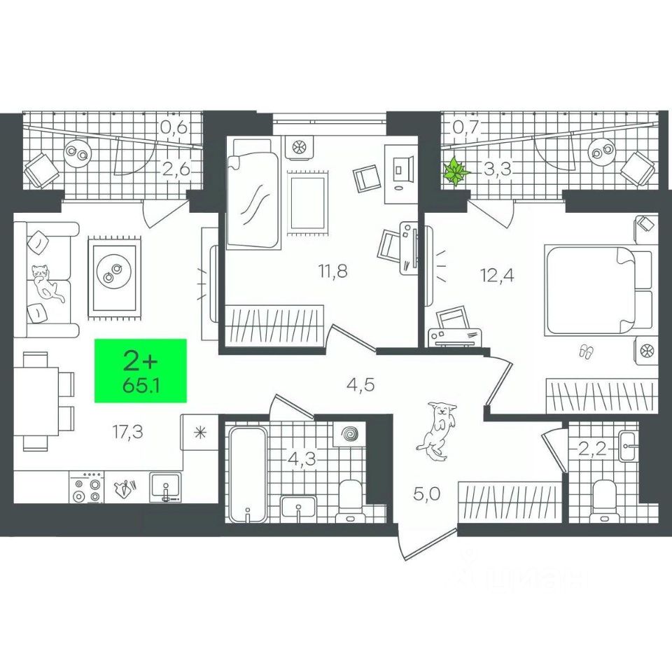 Продаётся 2-комнатная квартира в строящемся доме (1-Д3.1 (Глебова, 10)), срок сдачи: III-кв. 2026, общей площадью 65.17 кв.м., на 12 этаже. Компания 4D приступила к строительству нового жилого комплекса ''Гранд квартал''. Новый ЖК находится в зеленой зоне Калининского района, южнее микрорайона Тюменская слобода.