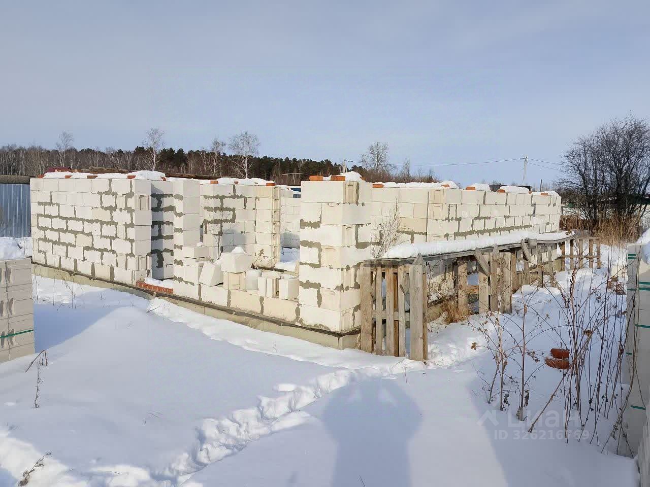 На земельном участке расположен дом на начальной стадии строительства, фундамент ленточный, площадью 8*11, стены поревит блоки, планировка 2+, кухня гостинная, 2 спальни, котельная, санузел.
