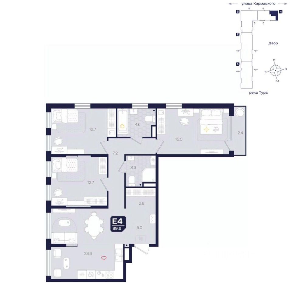 Эта квартира станет отличным выбором для тех, кто ценит комфорт, практичность и современные решения в планировке, обеспечивая идеальные условия для жизни и отдыха всей семьи.