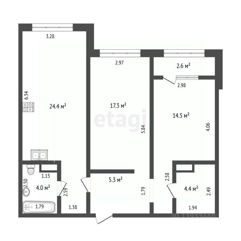 Продается 2+ комнатная квартира с современным ремонтом. Общая площадь квартиры 70,1 м2.