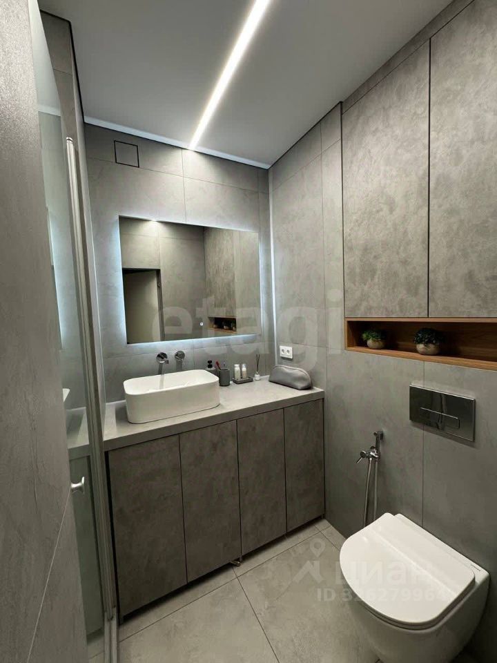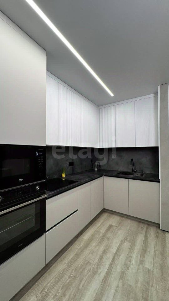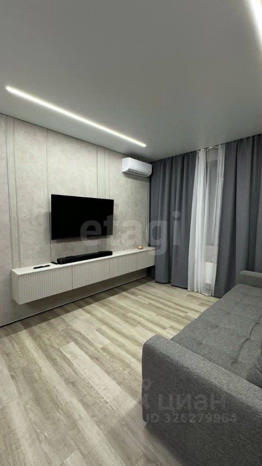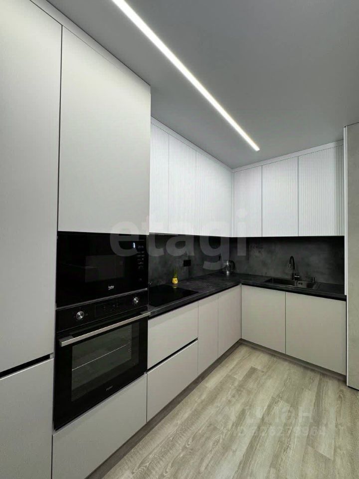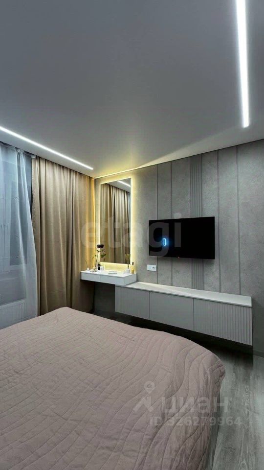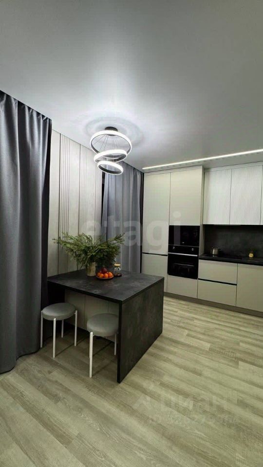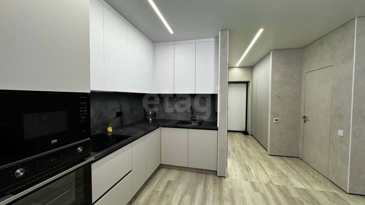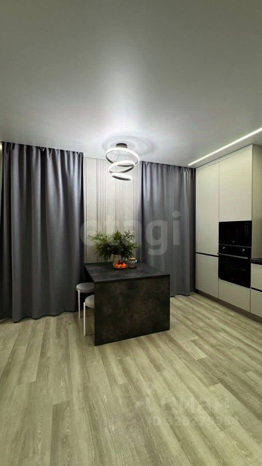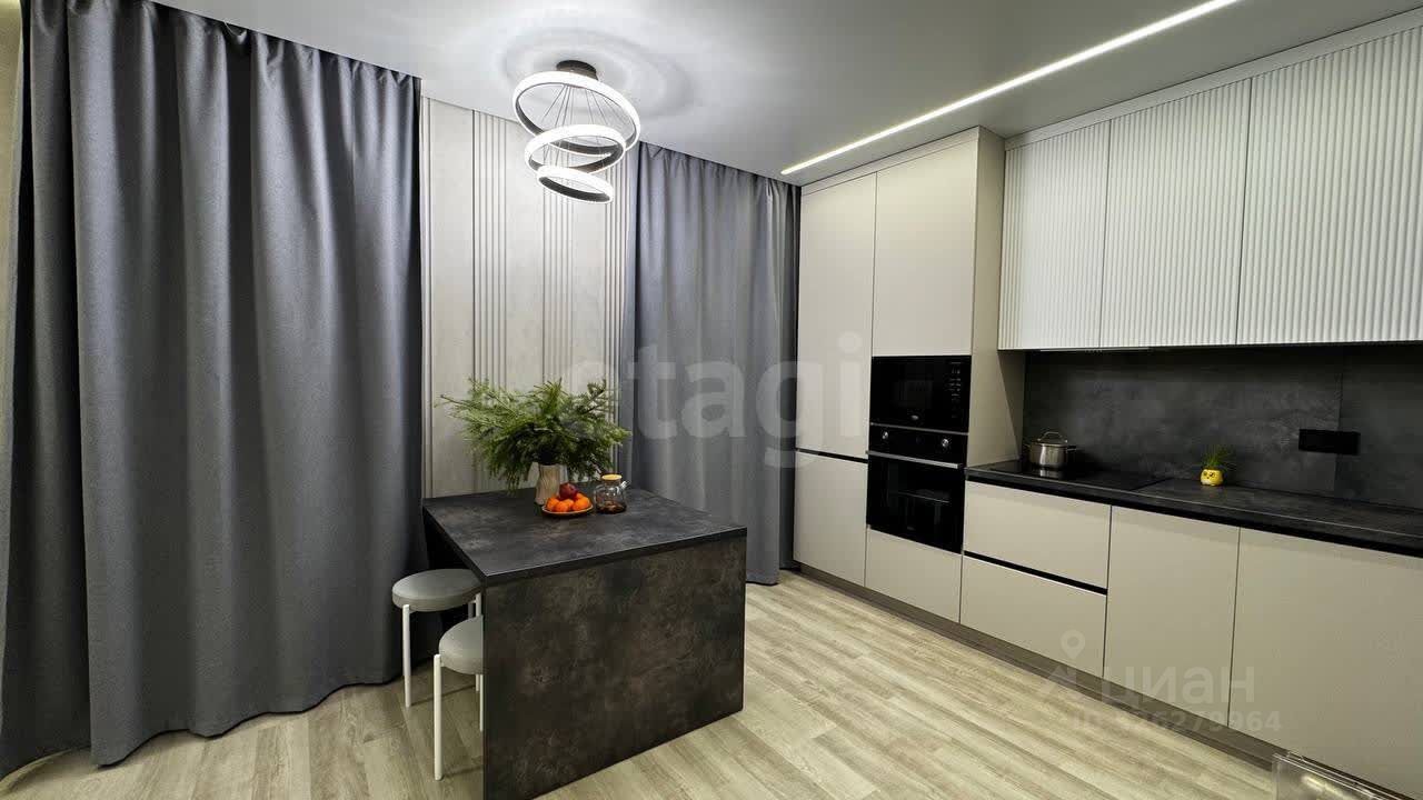 О КВАРТИРЕ. Общая площадь 45,2 кв.м., просторная кухня-гостиная 23,4 кв.м, спальня 11,6 кв.м. Выполнен качественный современный ремонт по дизайн-проекту, после которого никто не жил. На полу ламинат, на стенах декоративная штукатурка. Санузел совмещен, оформлен в светлых тонах, стены облицованы широкоформатным керамогранитом, итальянская встроенная сантехника. В санузле и прихожей оборудованы теплые полы, итальянская коллекторная система. Установлена система умный дом, датчики протечки от потопа, вся мебель на заказ, кондиционеры премиум сегмента. При продаже остается кухонный гарнитур со вcтроеннoй тexникoй (xoлодильник, поcудoмoeчная мaшина, микроволновка, варочная панель, духовой шкаф), диван, телевизор.