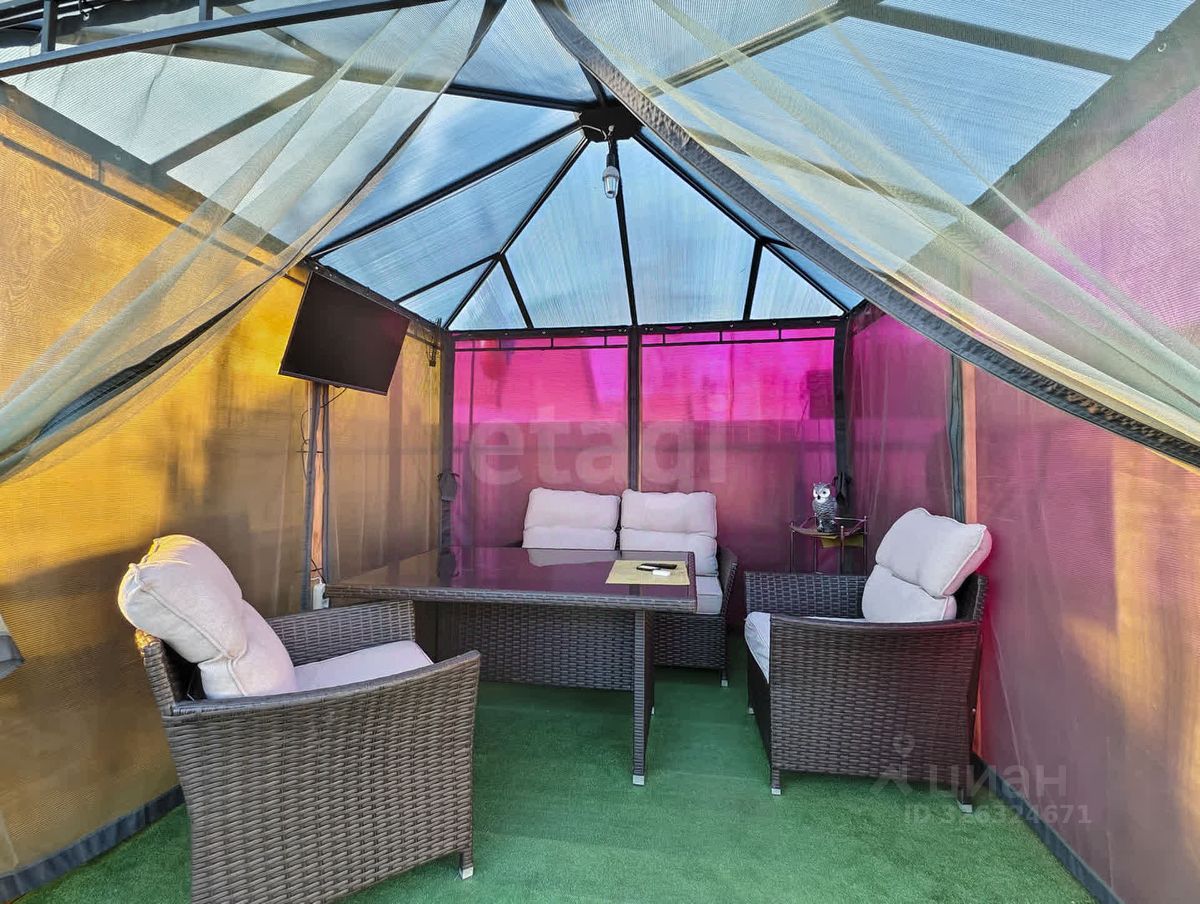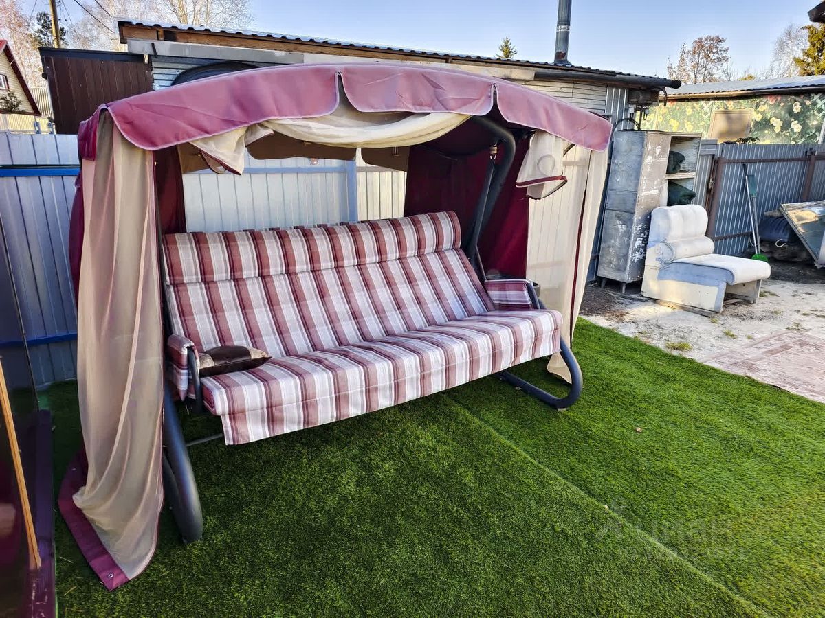 Организована приятная зона для отдыха с качелью и шатром.