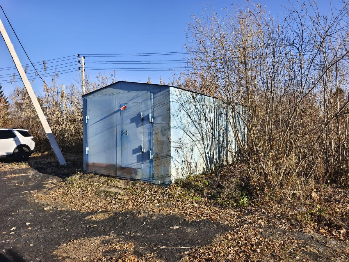 Перед входом на территорию отсыпано место под парковку и установлен металлический гараж.