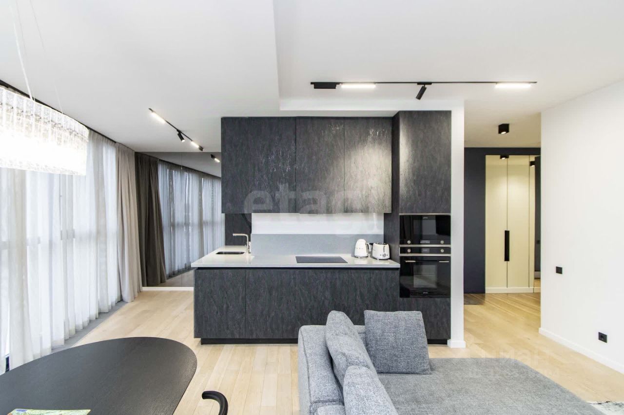 Уникальная квартира в престижном клубном доме ''Вертикаль'' ищет новых хозяев - ценителей комфорта и элегантности. Безупречный стиль, единство цветового решения, мебели и текстиля создает гармоничный интерьер, в котором чувствуешь себя спокойно и умиротворенно. Высокие потолки 3 м, многоуровневое освещение и панорамное остекление расширяют пространственное восприятие и придают объем. Из окон открывается замечательный вид на город, сторона солнечная. Функциональная планировка: кухня-гостиная 31 м2, детская и спальня, 2 санузла, хозяйственная комната, вместительные гардеробные в холле и спальне. Стены под покраску, на полу паркетная доска, в кухне и санузлах полы с подогревом, хозяйственная комната оборудована стиральной машиной и машиной для сушки белья.