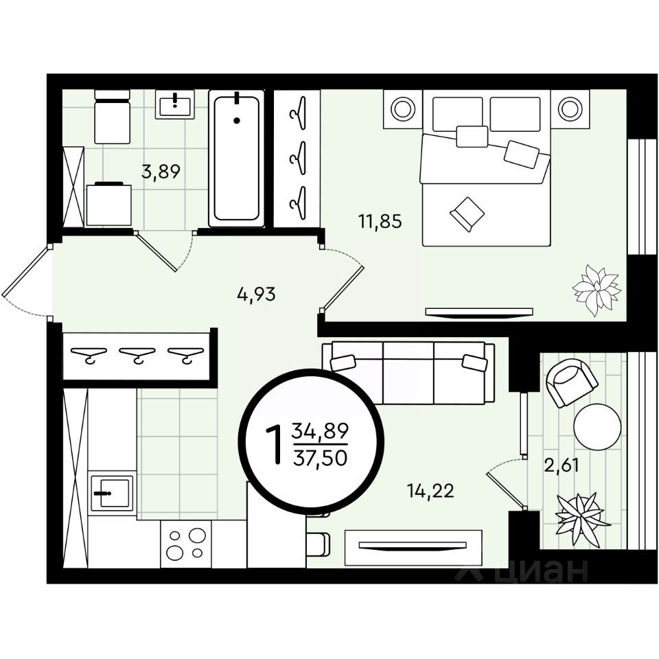 продам 1-к, Александра Звягина, 45 793 100 ₽