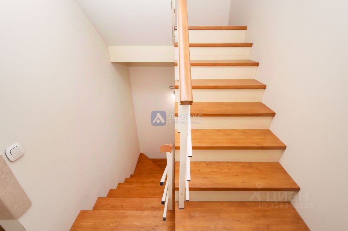 Лестница из натурального дерева ( сосна), бойлер на 50 л, теплые полы в санузлах, есть кладовая при входе в дом.