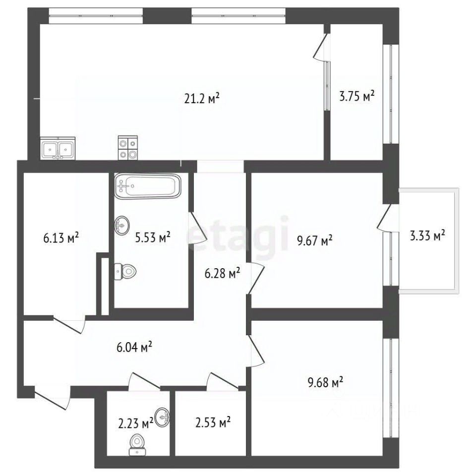 Квартира расположена на 7 этаже пятиэтажной секции, что обеспечивает отличную освещенность и прекрасный обзор. Небольшой балкон площадью 3,33 кв.м. идеально подойдет для утреннего кофе или вечернего отдыха на свежем воздухе.