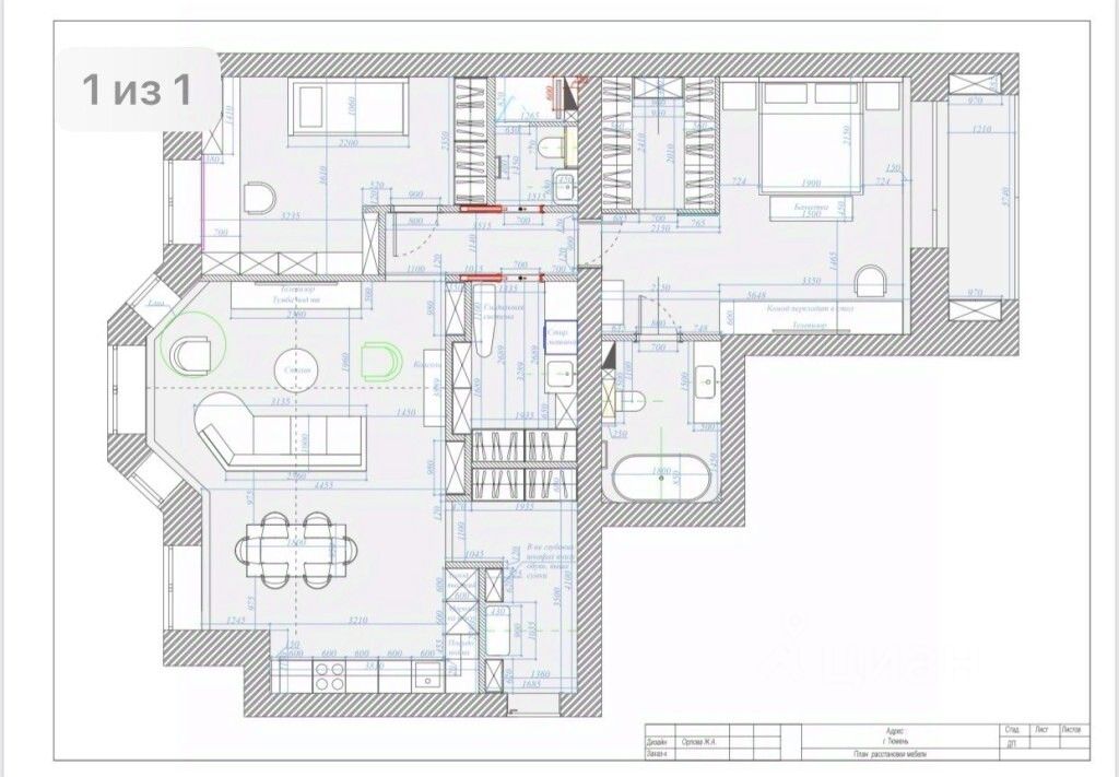 Пол - паркетная доска. С/у кафельная плитка Италия, Испания.