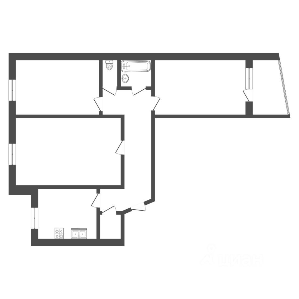 Удобная планировка ''распашонка'': комнаты разделены, что обеспечивает приватность.