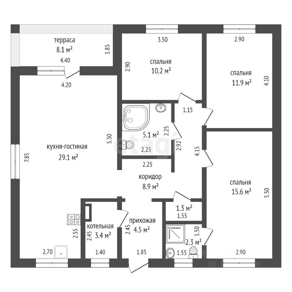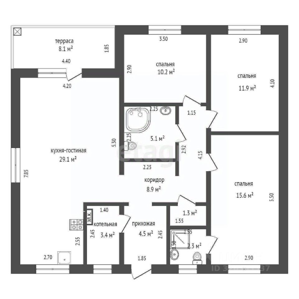 Общая площадь105 м2