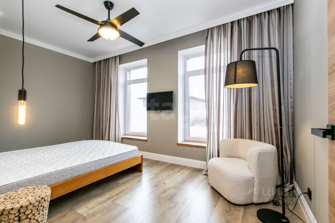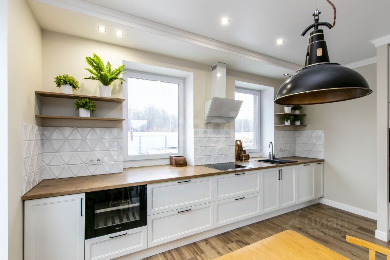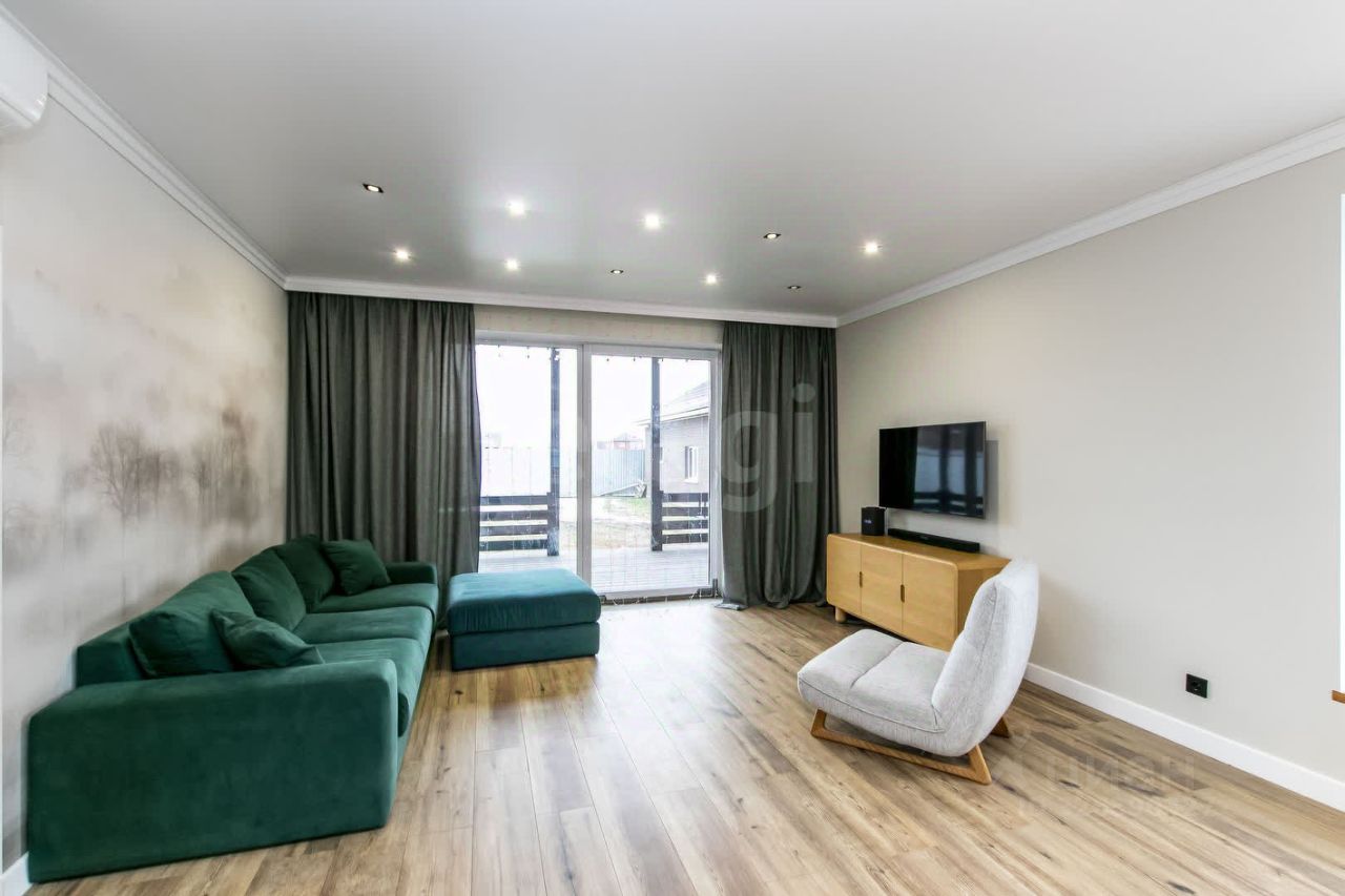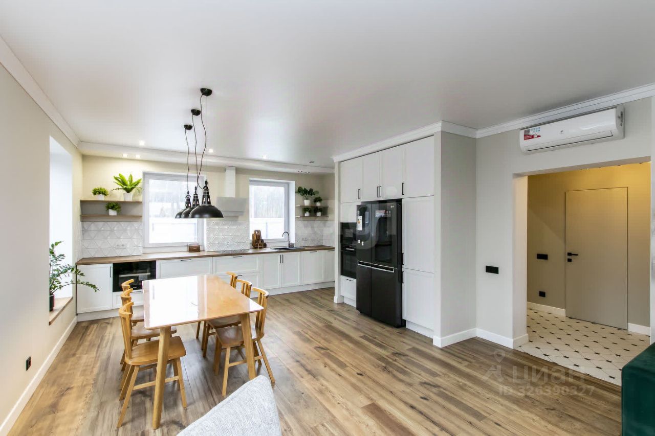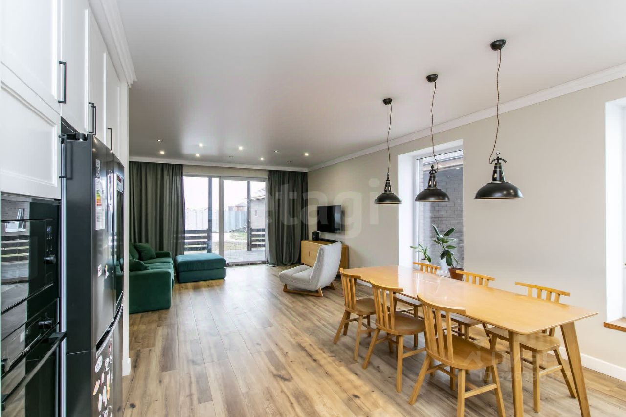 Дом сдается на время продажи. Новый кирпичный дом 154,5 кв.м. с продуманной планировкой и стильным дизайном. Описание дома: Первый этаж: просторная кухня-гостиная с обеденной зоной, гостевая спальня, санузел, технический узел. Второй этаж: три спальни, гардеробная, санузел. Высокие потолки создают ощущение простора, а натуральные материалы придают интерьеру уют. Полы на первом этаже выложены плиткой (керамогранит), включая фартук кухонного гарнитура. Все подоконники деревянные, обои под покраску, два эксклюзивных панно.