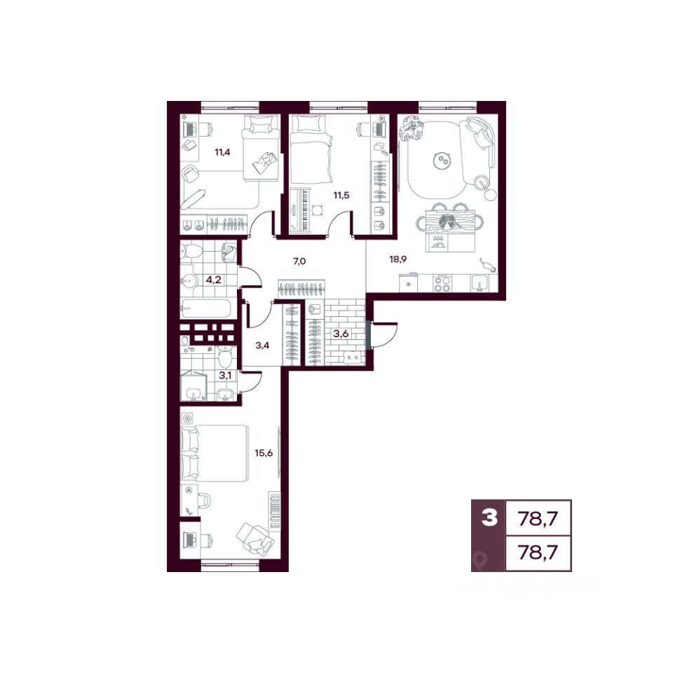 продам 3-к, Сергея Джанбровского, 21 корп. 410 785 835 ₽