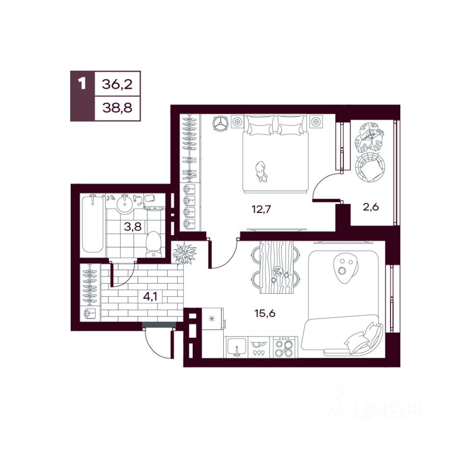 продам 1-к, Сергея Джанбровского, 21 корп. 47 491 715 ₽