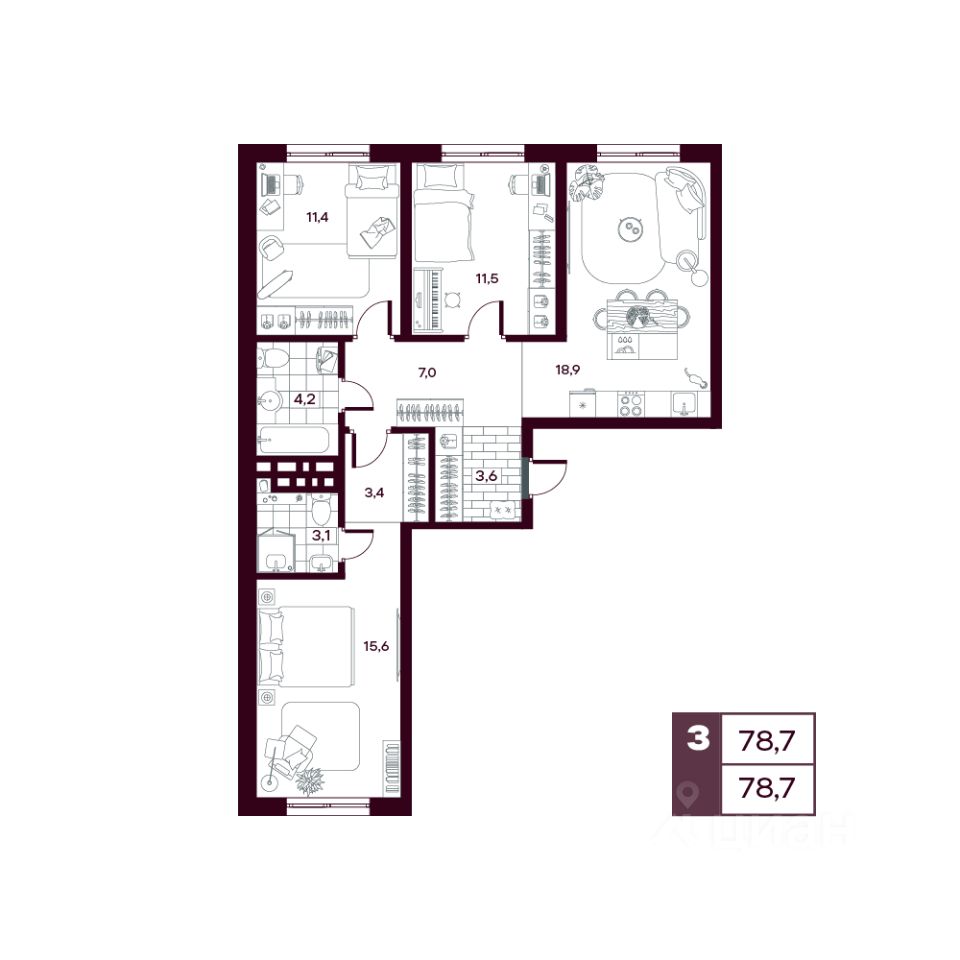 продам 3-к, Сергея Джанбровского, 21 корп. 411 295 835 ₽