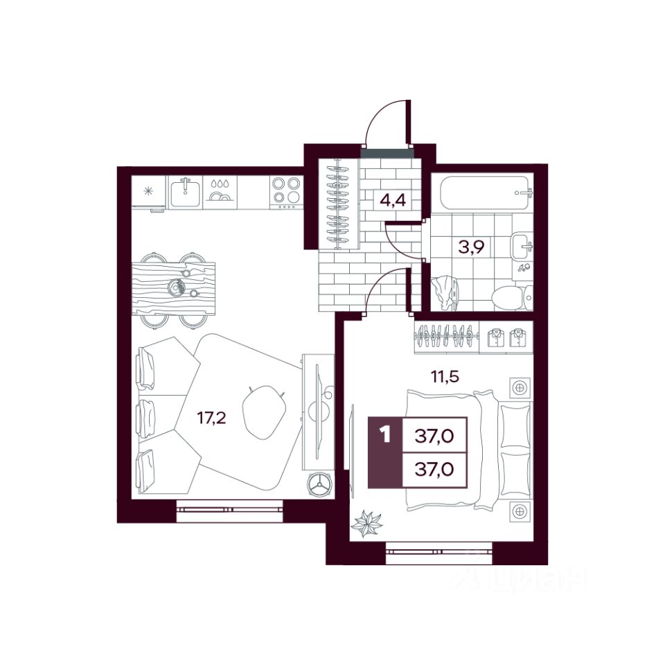продам 1-к, Сергея Джанбровского, 21 корп. 46 445 235 ₽