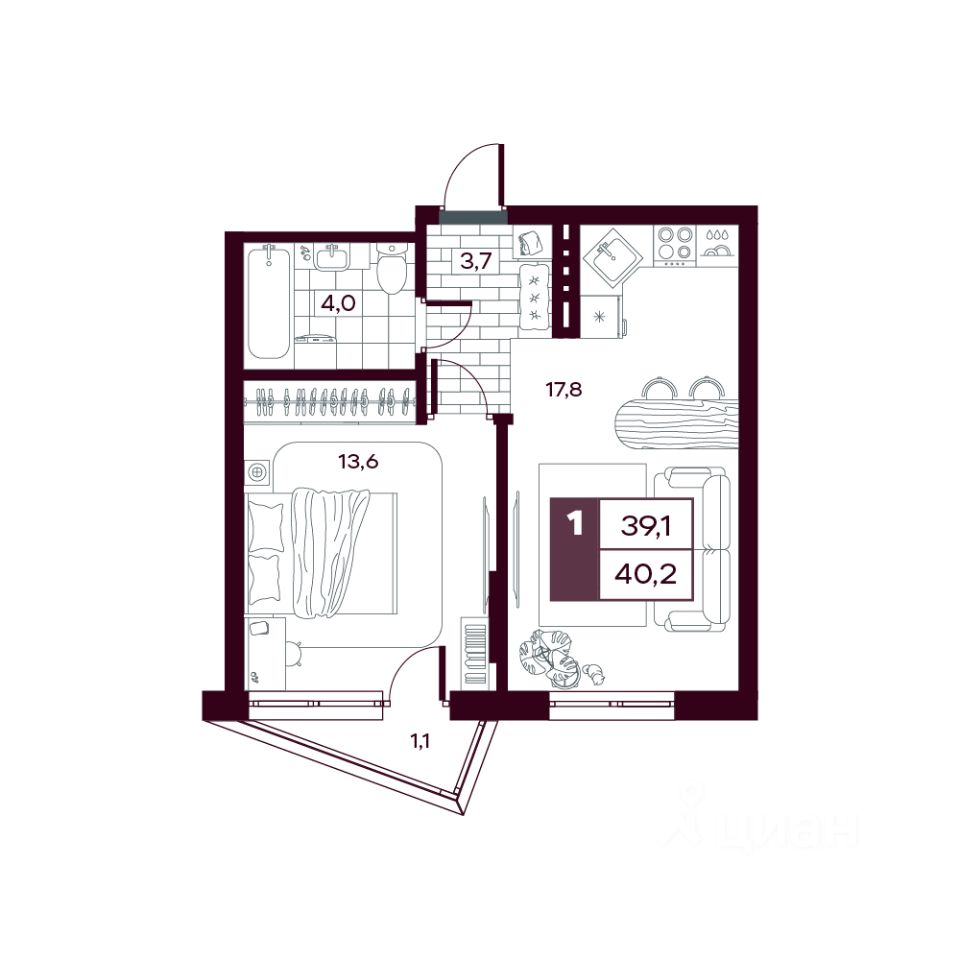 продам 1-к, Сергея Джанбровского, 21 корп. 46 537 935 ₽