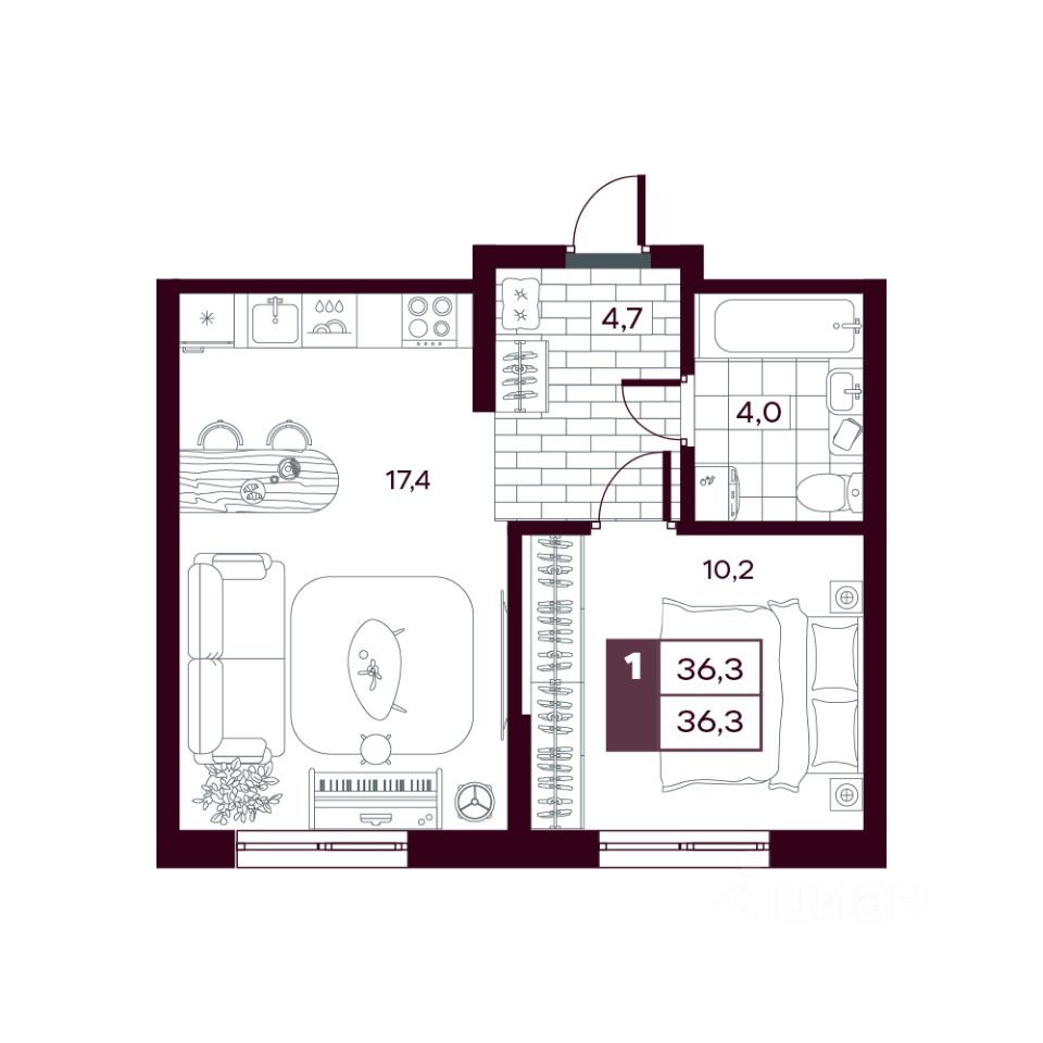 продам 1-к, Сергея Джанбровского, 21 корп. 26 898 435 ₽