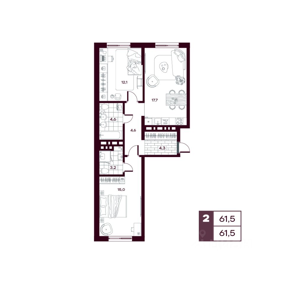 продам 2-к, Сергея Джанбровского, 21 корп. 29 385 835 ₽