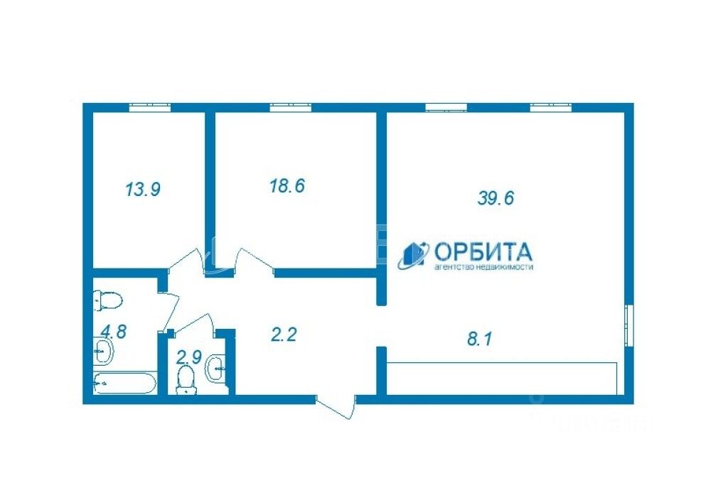 В квартире две изолированные комнаты и большая кухня-гостиная. Два санузла. Из окна вид на реку.
