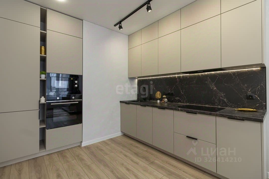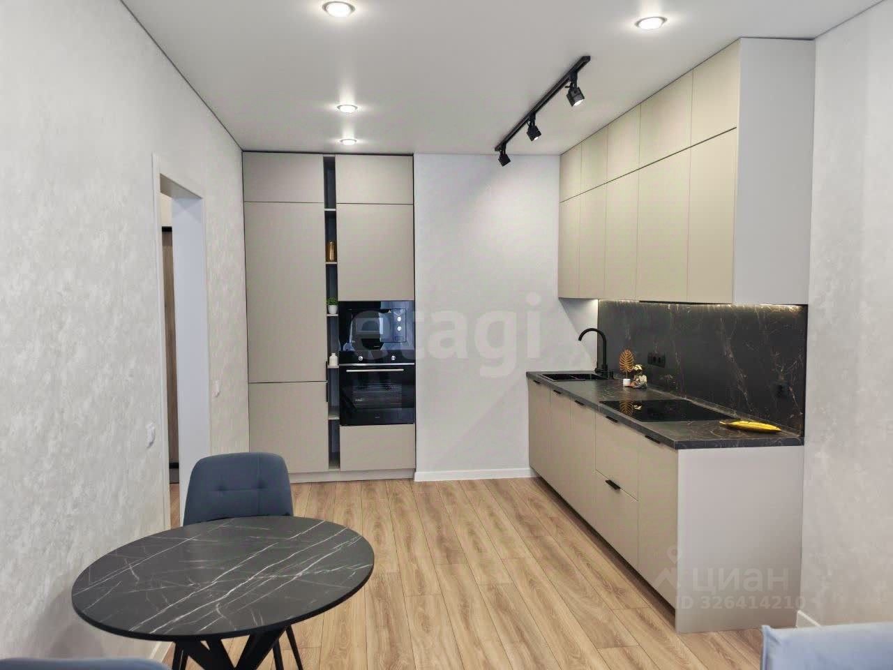Выполнен качественный ремонт в нейтральных тонах. Кухня - гостиная практически 19 кв.метров и изолированная спальня.