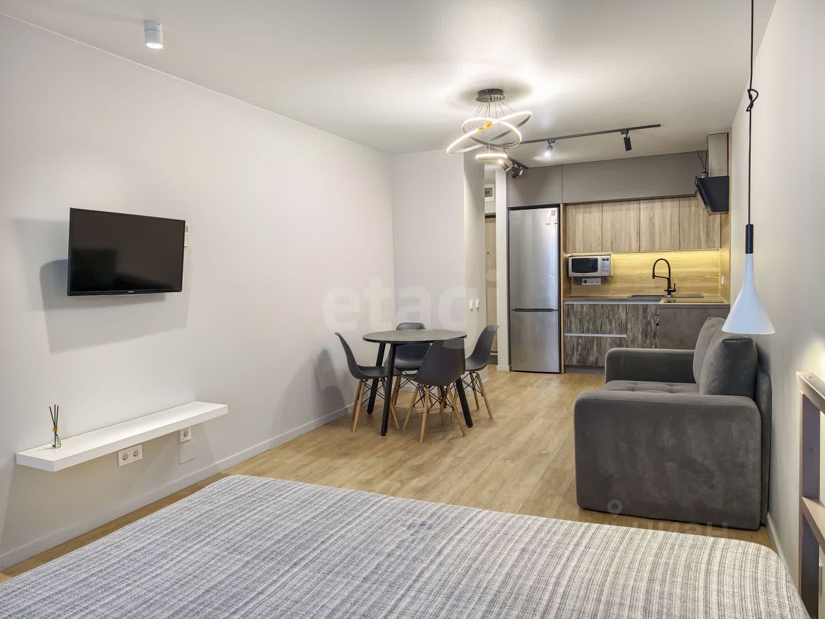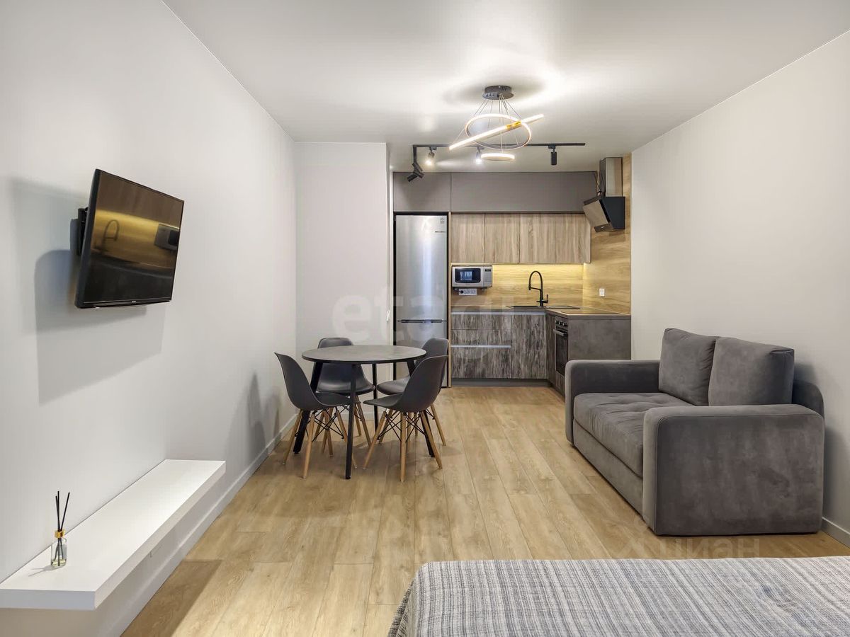 Предлагается к продаже студия площадью 32,7 кв.м в современном жилом комплексе ''Октябрьский'' от застройщика Брусника. В квартире выполнен свежий ремонт, полностью готова для проживания. На полу кварц-винил, стены под покраску — универсальное решение, легко адаптируется под любой интерьер. Всё необходимое для жизни уже есть, можно заехать сразу после сделки.