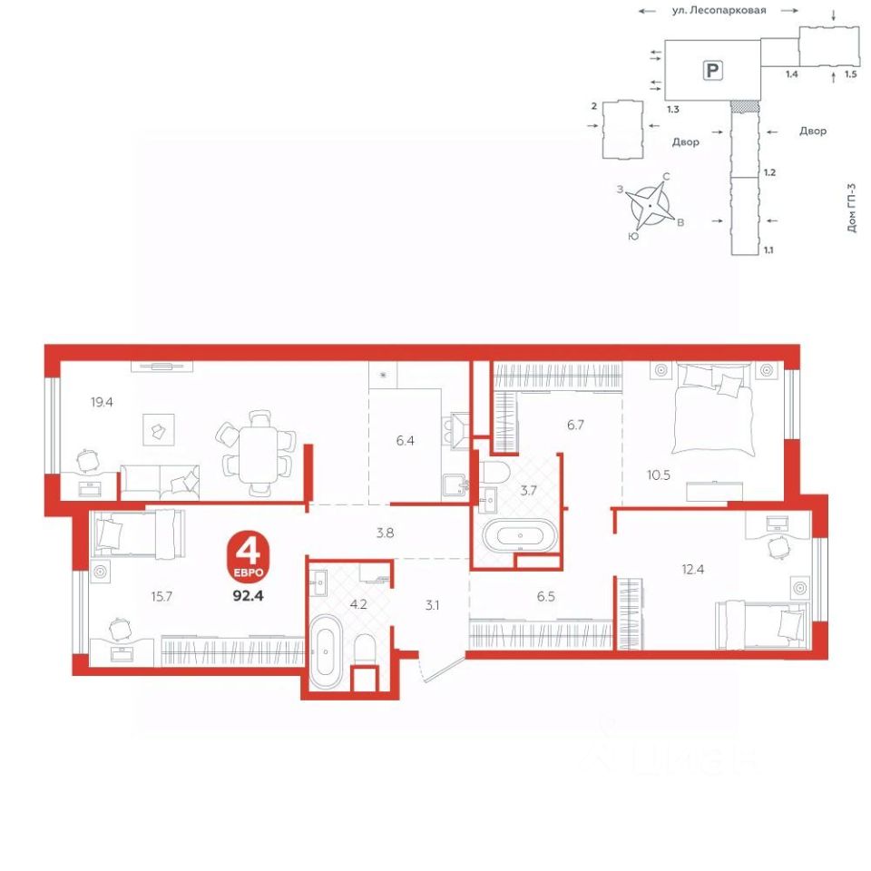 Квартира располагается в ГК ''Чистые Пруды'' от ''Паритет девелопмент''. Это флагманский проект компании в Тюмени. Расположение вдали от шумных улиц и оживленного центра создает ощущение жизни на природе и окружает тишиной и спокойствием. Есть вся необходимая социальная и коммерческая инфраструктура: магазины и сфера услуг на первых этажах. Школы, сады, поликлиника, парки в шаговой доступности. Квартал строится в районе Новой Лесобазы. Рядом выезд на объездную, что существенно экономит время. Поездка до центра города на автомобиле занимает 15-20 минут. Городские кварталы ''Чистые Пруды'' сформирован из домов переменной этажности и многоуровневых паркингов. Ввод 1 очереди строительства запланирован на II кв. 2028 года. Всё благоустройство квартала представлено двумя функциональными зонами: приватная внутри дворовая и общественная. Каждый закрытый двор имеет выход на единую променадную зону - бульвар. Концепция благоустройства основана на принципе модульности, что формирует основную идею приватности. Приватность проекта подчеркивает его особенный климат внутри. Модульное благоустройство позволит максимально эффективно использовать пространство двора и удовлетворить потребности различных категорий жителей. В квартирах базово выполнена улучшенная черновая отделка, которая включает в себя: выровненные стены, стяжка пола с шумоизоляцией, горизонтальная разводка отопления, установлены счетчики с телеметрией, окна с 5-камерным профилем и надежные входные двери. При желании можно добавить ремонт от застройщика и включить его в стоимость ипотеки, что позволит сэкономить на стройматериалах и переехать сразу после получения ключей. Характеристики квартиры: этаж - 4 количество комнат - 4 номер помещения - 164 площадь квартиры - 92,4 кв.мГармоничные пропорции и большие окна наполняют пространство светом, создавая уютную атмосферу. Умное зонирование позволяет удобно организовать как рабочую, так и жилую зоны, что особенно важно для современных жителей. Санузел спроектирован с учетом всех потребностей: здесь есть ванна и место для стиральной машины. Каждый метр квартиры используется с максимальной эффективностью, что делает эту планировку отличным выбором для тех, кто ценит комфорт и удобство.