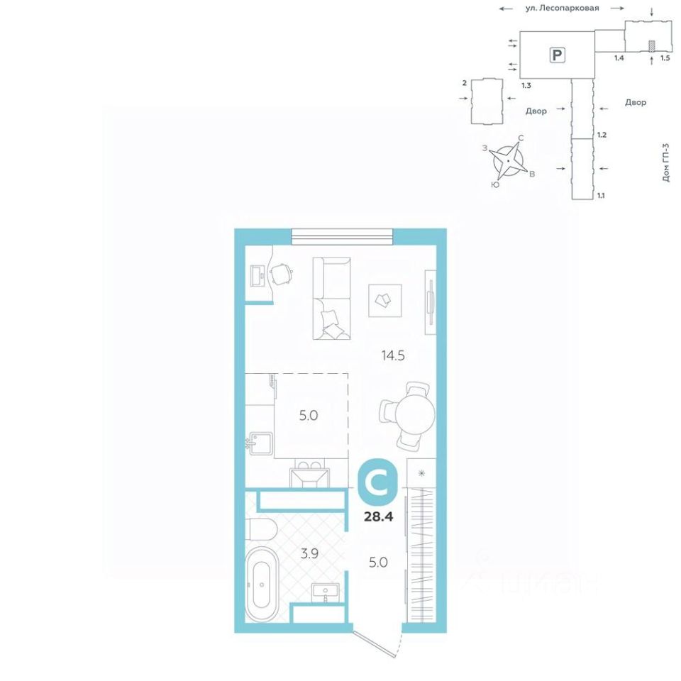 Квартира располагается в ГК ''Чистые Пруды'' от ''Паритет девелопмент''. Это флагманский проект компании в Тюмени. Расположение вдали от шумных улиц и оживленного центра создает ощущение жизни на природе и окружает тишиной и спокойствием. Есть вся необходимая социальная и коммерческая инфраструктура: магазины и сфера услуг на первых этажах. Школы, сады, поликлиника, парки в шаговой доступности. Квартал строится в районе Новой Лесобазы. Рядом выезд на объездную, что существенно экономит время. Поездка до центра города на автомобиле занимает 15-20 минут. Городские кварталы ''Чистые Пруды'' сформирован из домов переменной этажности и многоуровневых паркингов. Ввод 1 очереди строительства запланирован на II кв. 2028 года. Всё благоустройство квартала представлено двумя функциональными зонами: приватная внутри дворовая и общественная. Каждый закрытый двор имеет выход на единую променадную зону - бульвар. Концепция благоустройства основана на принципе модульности, что формирует основную идею приватности. Приватность проекта подчеркивает его особенный климат внутри. Модульное благоустройство позволит максимально эффективно использовать пространство двора и удовлетворить потребности различных категорий жителей. В квартирах базово выполнена улучшенная черновая отделка, которая включает в себя: выровненные стены, стяжка пола с шумоизоляцией, горизонтальная разводка отопления, установлены счетчики с телеметрией, окна с 5-камерным профилем и надежные входные двери. При желании можно добавить ремонт от застройщика и включить его в стоимость ипотеки, что позволит сэкономить на стройматериалах и переехать сразу после получения ключей. Характеристики квартиры: этаж - 2 количество комнат - 1 номер помещения - 273 площадь квартиры - 28,4 кв.мГармоничные пропорции и большие окна наполняют пространство светом, создавая уютную атмосферу. Умное зонирование позволяет удобно организовать как рабочую, так и жилую зоны, что особенно важно для современных жителей. Санузел спроектирован с учетом всех потребностей: здесь есть ванна и место для стиральной машины. Каждый метр квартиры используется с максимальной эффективностью, что делает эту планировку отличным выбором для тех, кто ценит комфорт и удобство.