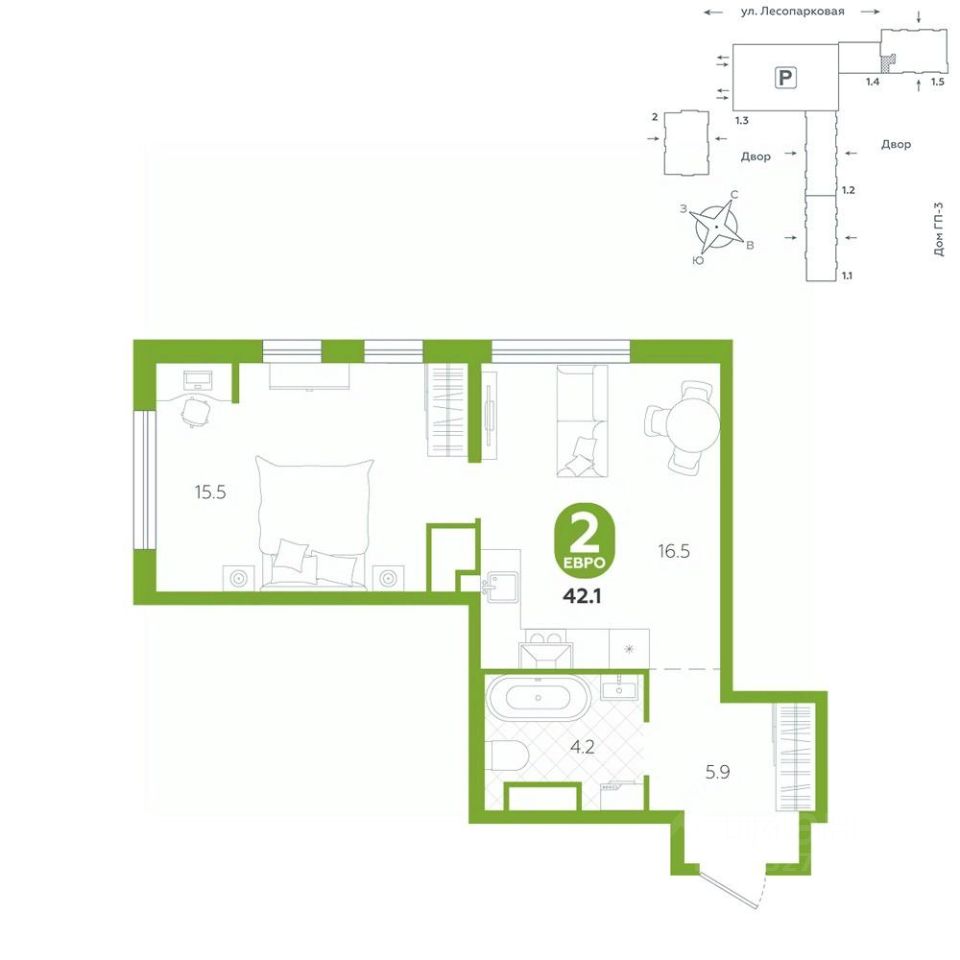 Квартира располагается в ГК ''Чистые Пруды'' от ''Паритет девелопмент''. Это флагманский проект компании в Тюмени. Расположение вдали от шумных улиц и оживленного центра создает ощущение жизни на природе и окружает тишиной и спокойствием. Есть вся необходимая социальная и коммерческая инфраструктура: магазины и сфера услуг на первых этажах. Школы, сады, поликлиника, парки в шаговой доступности. Квартал строится в районе Новой Лесобазы. Рядом выезд на объездную, что существенно экономит время. Поездка до центра города на автомобиле занимает 15-20 минут. Городские кварталы ''Чистые Пруды'' сформирован из домов переменной этажности и многоуровневых паркингов. Ввод 1 очереди строительства запланирован на II кв. 2028 года. Всё благоустройство квартала представлено двумя функциональными зонами: приватная внутри дворовая и общественная. Каждый закрытый двор имеет выход на единую променадную зону - бульвар. Концепция благоустройства основана на принципе модульности, что формирует основную идею приватности. Приватность проекта подчеркивает его особенный климат внутри. Модульное благоустройство позволит максимально эффективно использовать пространство двора и удовлетворить потребности различных категорий жителей. В квартирах базово выполнена улучшенная черновая отделка, которая включает в себя: выровненные стены, стяжка пола с шумоизоляцией, горизонтальная разводка отопления, установлены счетчики с телеметрией, окна с 5-камерным профилем и надежные входные двери. При желании можно добавить ремонт от застройщика и включить его в стоимость ипотеки, что позволит сэкономить на стройматериалах и переехать сразу после получения ключей. Характеристики квартиры: этаж - 17 количество комнат - 2 номер помещения - 441 площадь квартиры - 42,1 кв.мГармоничные пропорции и большие окна наполняют пространство светом, создавая уютную атмосферу. Умное зонирование позволяет удобно организовать как рабочую, так и жилую зоны, что особенно важно для современных жителей. Санузел спроектирован с учетом всех потребностей: здесь есть ванна и место для стиральной машины. Каждый метр квартиры используется с максимальной эффективностью, что делает эту планировку отличным выбором для тех, кто ценит комфорт и удобство.