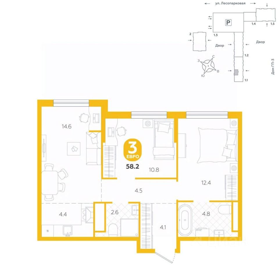 Квартира располагается в ГК ''Чистые Пруды'' от ''Паритет девелопмент''. Это флагманский проект компании в Тюмени. Расположение вдали от шумных улиц и оживленного центра создает ощущение жизни на природе и окружает тишиной и спокойствием. Есть вся необходимая социальная и коммерческая инфраструктура: магазины и сфера услуг на первых этажах. Школы, сады, поликлиника, парки в шаговой доступности. Квартал строится в районе Новой Лесобазы. Рядом выезд на объездную, что существенно экономит время. Поездка до центра города на автомобиле занимает 15-20 минут. Городские кварталы ''Чистые Пруды'' сформирован из домов переменной этажности и многоуровневых паркингов. Ввод 1 очереди строительства запланирован на II кв. 2028 года. Всё благоустройство квартала представлено двумя функциональными зонами: приватная внутри дворовая и общественная. Каждый закрытый двор имеет выход на единую променадную зону - бульвар. Концепция благоустройства основана на принципе модульности, что формирует основную идею приватности. Приватность проекта подчеркивает его особенный климат внутри. Модульное благоустройство позволит максимально эффективно использовать пространство двора и удовлетворить потребности различных категорий жителей. В квартирах базово выполнена улучшенная черновая отделка, которая включает в себя: выровненные стены, стяжка пола с шумоизоляцией, горизонтальная разводка отопления, установлены счетчики с телеметрией, окна с 5-камерным профилем и надежные входные двери. При желании можно добавить ремонт от застройщика и включить его в стоимость ипотеки, что позволит сэкономить на стройматериалах и переехать сразу после получения ключей. Характеристики квартиры: этаж - 7 количество комнат - 3 номер помещения - 66 площадь квартиры - 58,2 кв.мГармоничные пропорции и большие окна наполняют пространство светом, создавая уютную атмосферу. Умное зонирование позволяет удобно организовать как рабочую, так и жилую зоны, что особенно важно для современных жителей. Санузел спроектирован с учетом всех потребностей: здесь есть ванна и место для стиральной машины. Каждый метр квартиры используется с максимальной эффективностью, что делает эту планировку отличным выбором для тех, кто ценит комфорт и удобство.