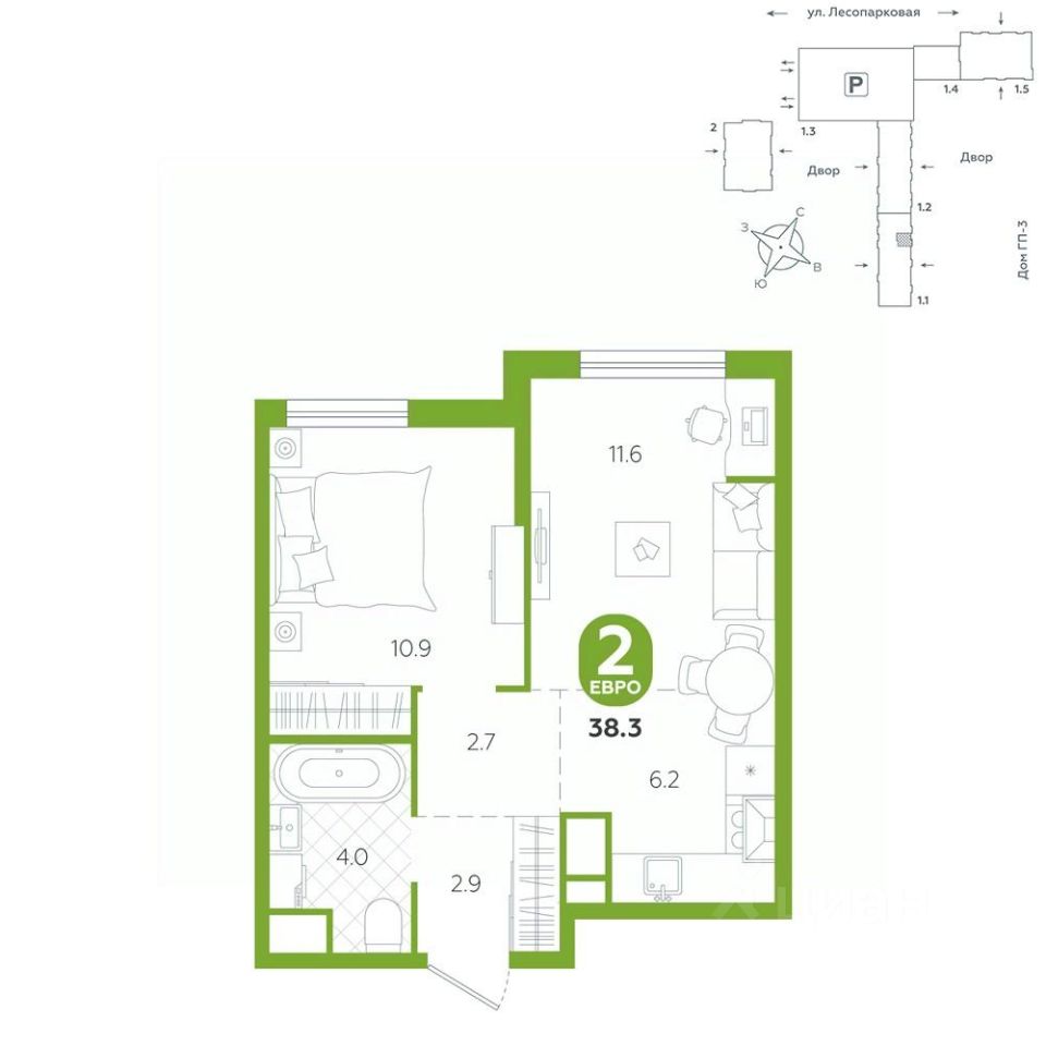 Квартира располагается в ГК ''Чистые Пруды'' от ''Паритет девелопмент''. Это флагманский проект компании в Тюмени. Расположение вдали от шумных улиц и оживленного центра создает ощущение жизни на природе и окружает тишиной и спокойствием. Есть вся необходимая социальная и коммерческая инфраструктура: магазины и сфера услуг на первых этажах. Школы, сады, поликлиника, парки в шаговой доступности. Квартал строится в районе Новой Лесобазы. Рядом выезд на объездную, что существенно экономит время. Поездка до центра города на автомобиле занимает 15-20 минут. Городские кварталы ''Чистые Пруды'' сформирован из домов переменной этажности и многоуровневых паркингов. Ввод 1 очереди строительства запланирован на II кв. 2028 года. Всё благоустройство квартала представлено двумя функциональными зонами: приватная внутри дворовая и общественная. Каждый закрытый двор имеет выход на единую променадную зону - бульвар. Концепция благоустройства основана на принципе модульности, что формирует основную идею приватности. Приватность проекта подчеркивает его особенный климат внутри. Модульное благоустройство позволит максимально эффективно использовать пространство двора и удовлетворить потребности различных категорий жителей. В квартирах базово выполнена улучшенная черновая отделка, которая включает в себя: выровненные стены, стяжка пола с шумоизоляцией, горизонтальная разводка отопления, установлены счетчики с телеметрией, окна с 5-камерным профилем и надежные входные двери. При желании можно добавить ремонт от застройщика и включить его в стоимость ипотеки, что позволит сэкономить на стройматериалах и переехать сразу после получения ключей. Характеристики квартиры: этаж - 9 количество комнат - 2 номер помещения - 93 площадь квартиры - 38,3 кв.мГармоничные пропорции и большие окна наполняют пространство светом, создавая уютную атмосферу. Умное зонирование позволяет удобно организовать как рабочую, так и жилую зоны, что особенно важно для современных жителей. Санузел спроектирован с учетом всех потребностей: здесь есть ванна и место для стиральной машины. Каждый метр квартиры используется с максимальной эффективностью, что делает эту планировку отличным выбором для тех, кто ценит комфорт и удобство.