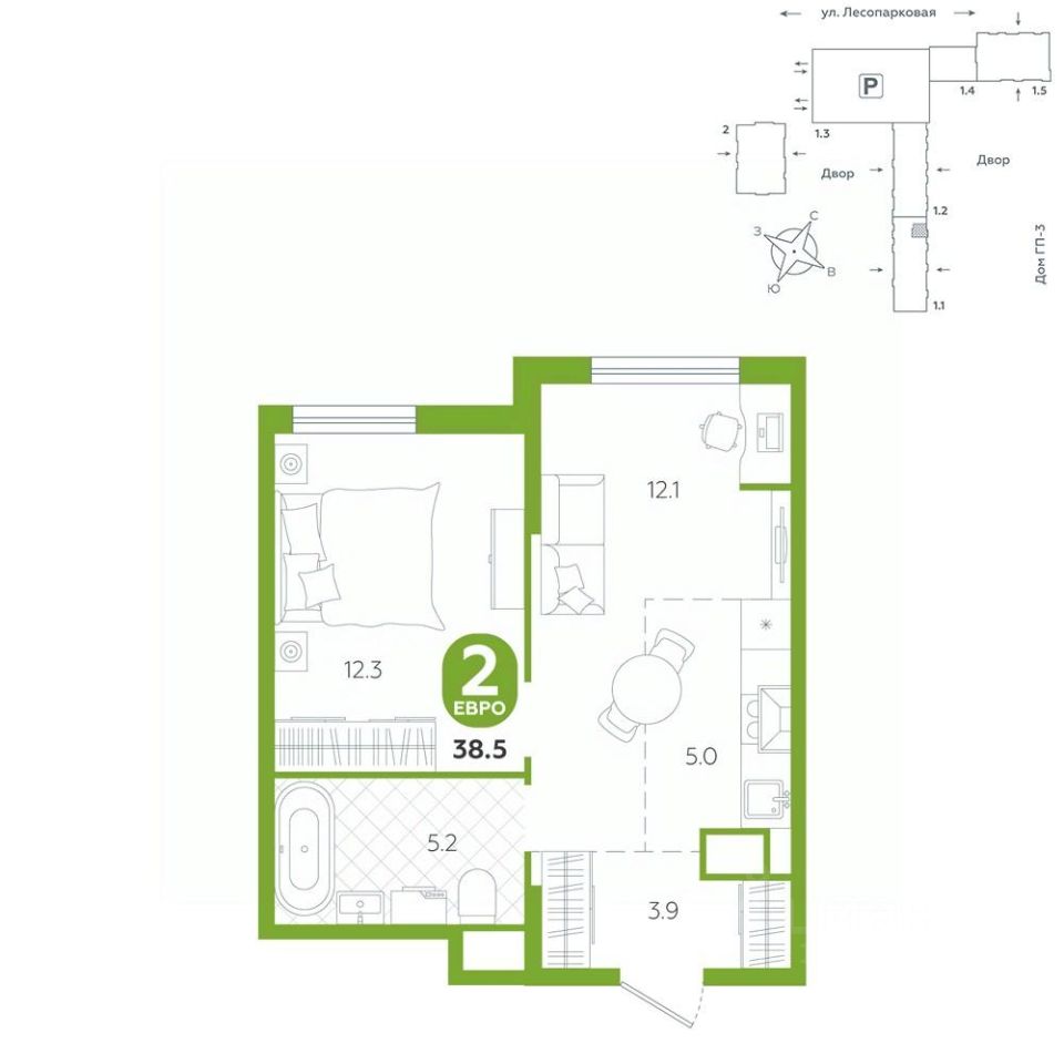 Квартира располагается в ГК ''Чистые Пруды'' от ''Паритет девелопмент''. Это флагманский проект компании в Тюмени. Расположение вдали от шумных улиц и оживленного центра создает ощущение жизни на природе и окружает тишиной и спокойствием. Есть вся необходимая социальная и коммерческая инфраструктура: магазины и сфера услуг на первых этажах. Школы, сады, поликлиника, парки в шаговой доступности. Квартал строится в районе Новой Лесобазы. Рядом выезд на объездную, что существенно экономит время. Поездка до центра города на автомобиле занимает 15-20 минут. Городские кварталы ''Чистые Пруды'' сформирован из домов переменной этажности и многоуровневых паркингов. Ввод 1 очереди строительства запланирован на II кв. 2028 года. Всё благоустройство квартала представлено двумя функциональными зонами: приватная внутри дворовая и общественная. Каждый закрытый двор имеет выход на единую променадную зону - бульвар. Концепция благоустройства основана на принципе модульности, что формирует основную идею приватности. Приватность проекта подчеркивает его особенный климат внутри. Модульное благоустройство позволит максимально эффективно использовать пространство двора и удовлетворить потребности различных категорий жителей. В квартирах базово выполнена улучшенная черновая отделка, которая включает в себя: выровненные стены, стяжка пола с шумоизоляцией, горизонтальная разводка отопления, установлены счетчики с телеметрией, окна с 5-камерным профилем и надежные входные двери. При желании можно добавить ремонт от застройщика и включить его в стоимость ипотеки, что позволит сэкономить на стройматериалах и переехать сразу после получения ключей. Характеристики квартиры: этаж - 11 количество комнат - 2 номер помещения - 114 площадь квартиры - 38,5 кв.мГармоничные пропорции и большие окна наполняют пространство светом, создавая уютную атмосферу. Умное зонирование позволяет удобно организовать как рабочую, так и жилую зоны, что особенно важно для современных жителей. Санузел спроектирован с учетом всех потребностей: здесь есть ванна и место для стиральной машины. Каждый метр квартиры используется с максимальной эффективностью, что делает эту планировку отличным выбором для тех, кто ценит комфорт и удобство.
