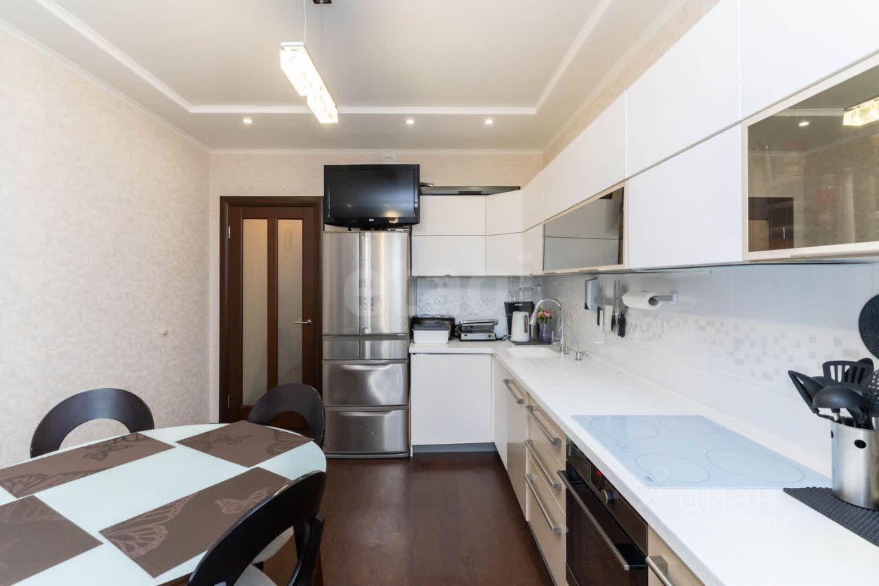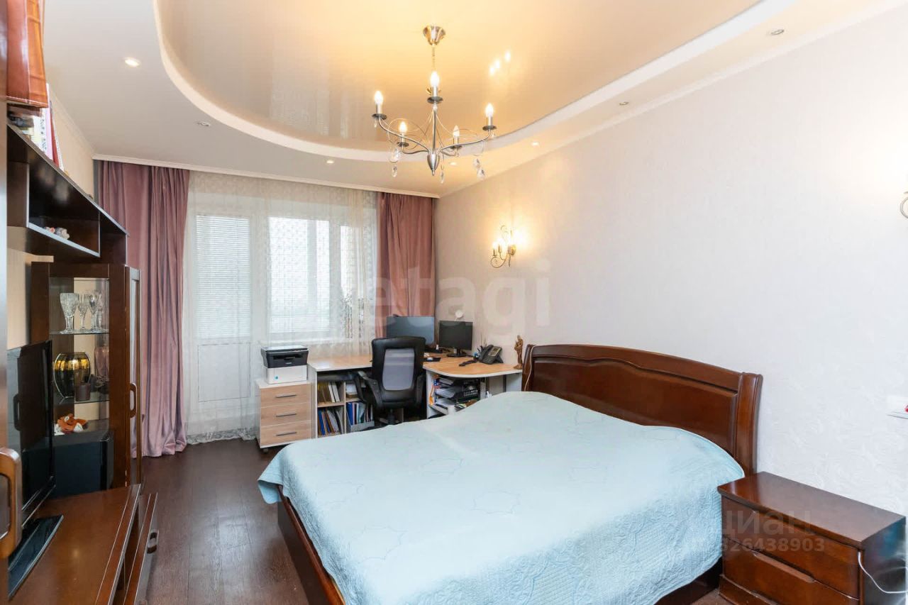 Квартира расположена в 14-этажном доме на юго-западной стороне, что обеспечивает хорошую естественную освещенность в течение дня. Общая площадь 87 кв. м позволяет комфортно разместиться большой семье.