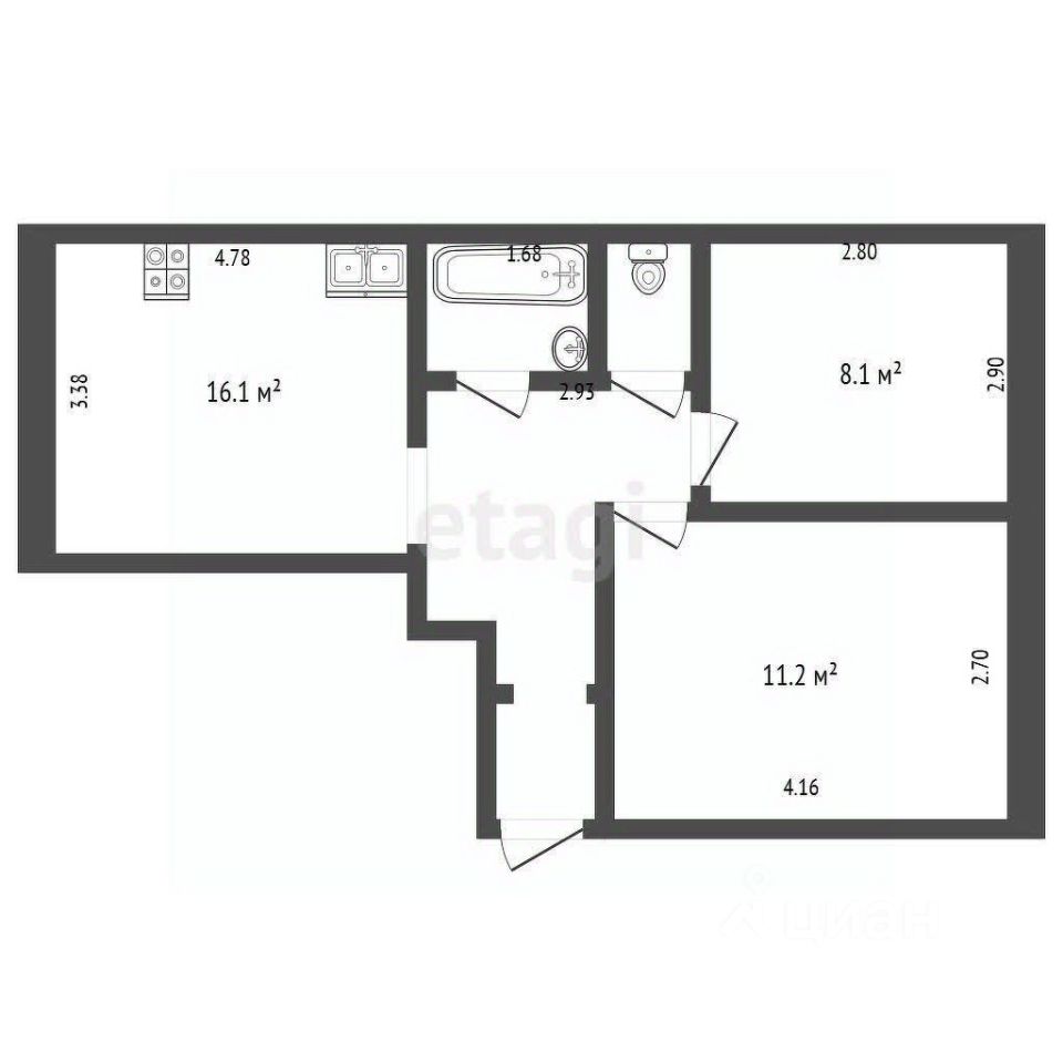 Продаётся квартира 2+. Дом построен в 2016г.