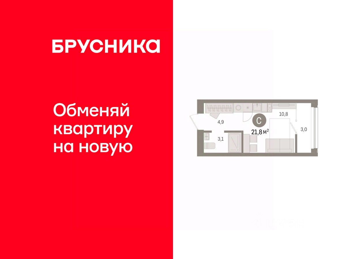 Студия в жилом районе ''Зарека''. Особенности планировки: предчистовая отделка, тёплая лоджия. квартиры в нашей базе: Панама01-01-6-6.6.5.